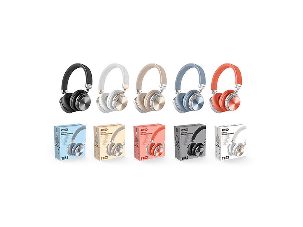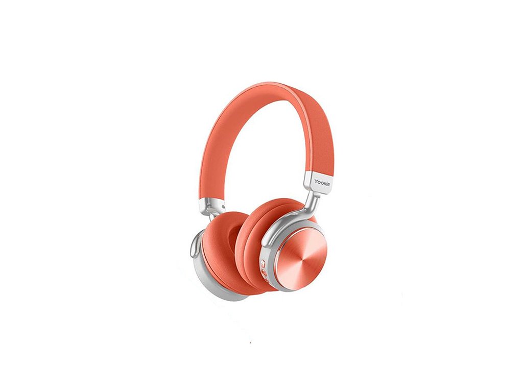 Elegantní bluetooth sluchátka od značky Yookie, v jemné růžové barvě