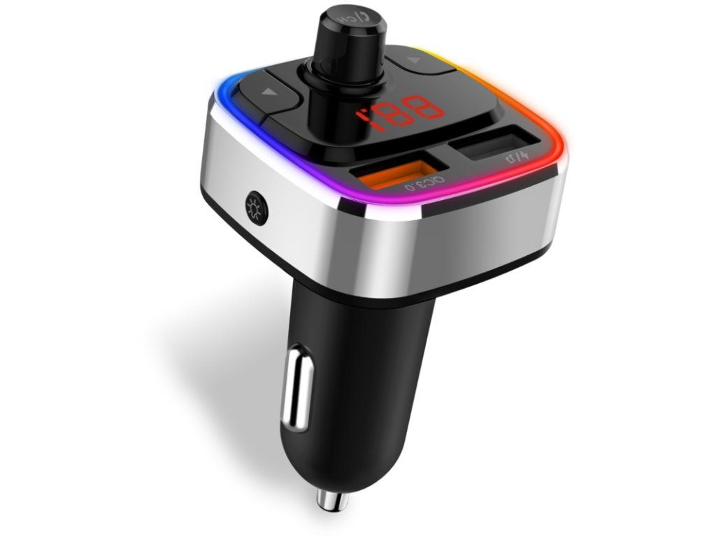 Díky technologii Bluetooth 5.0 lze zařízení snadno spárovat s telefonem a přehrávat hudbu přímo do autorádia prostřednictvím FM frekvence. Transmitter zároveň funguje jako dvouportová USB nabíječka s podporou rychlého nabíjení Quick Charge 3.0.
