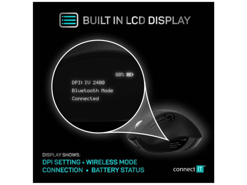 Connect IT For Health DualMode bezdrátová ergonomická myš s LCD displejem – černá