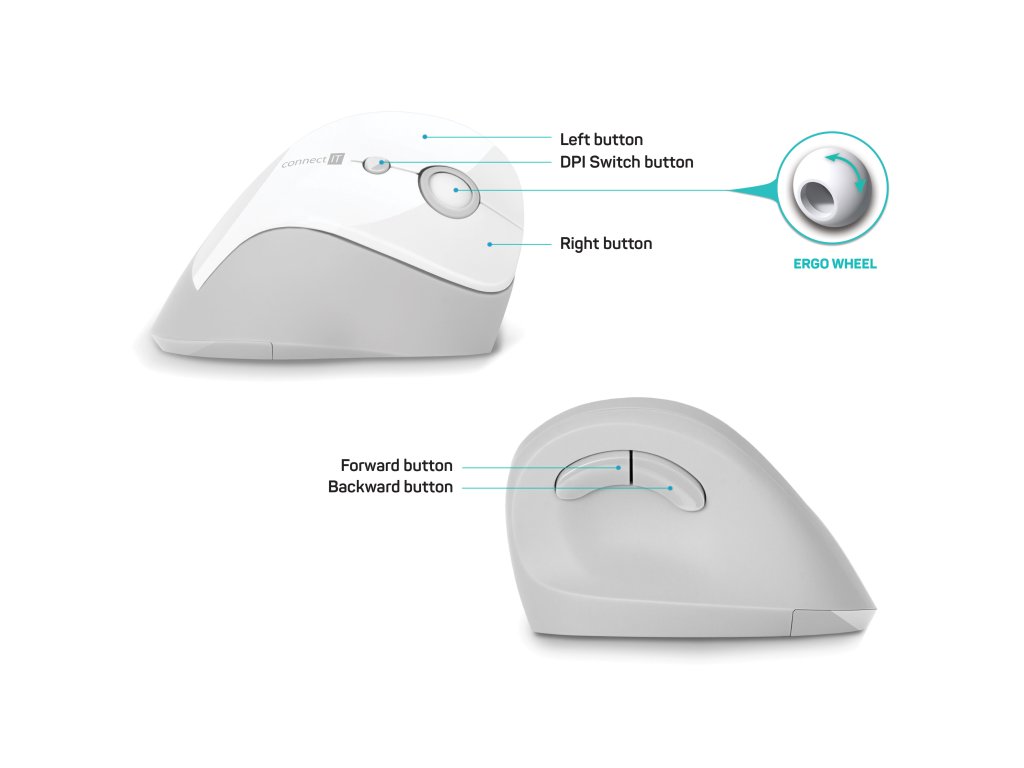Connect IT For Health Gloss ergonomická vertikální bezdrátová myš – bílá