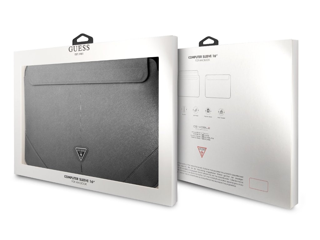 Guess Saffiano Triangle Metal Logo Computer sleeve je perfektní obal pro notebook s úhlopříčkou displeje až do 16"