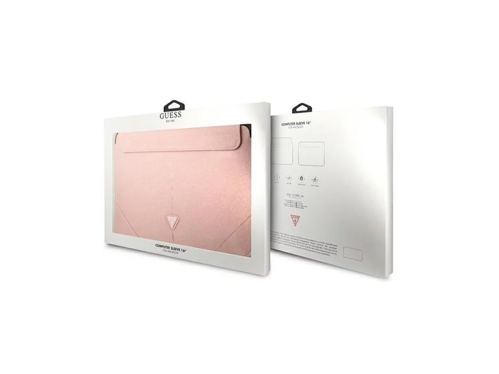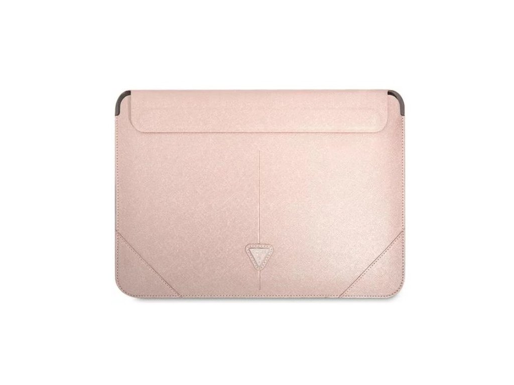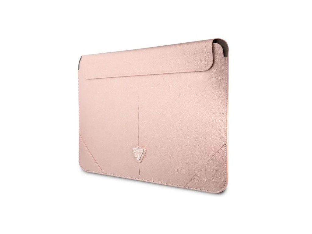 Guess Saffiano Triangle Metal Logo pouzdro na počítač 16" růžový