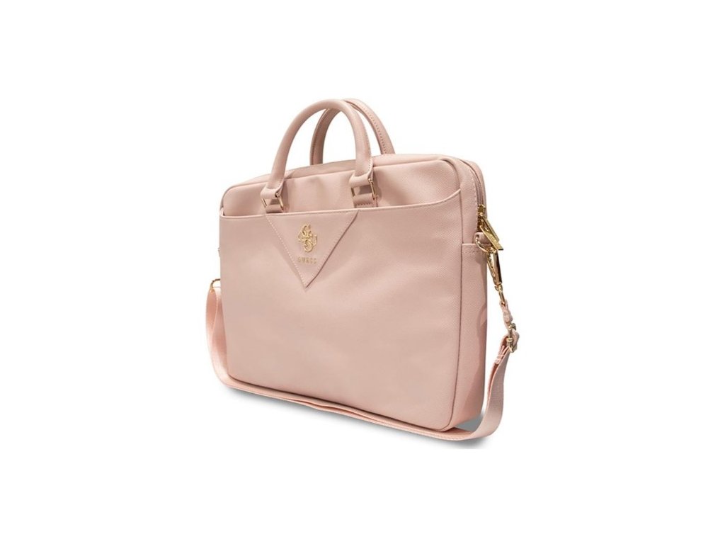 Taška na notebook Guess Triangle 4G v růžové barvě je spojením elegancie a funkčnosti, které poskytují spolehlivou ochranu a špičkový design pro váš notebook.