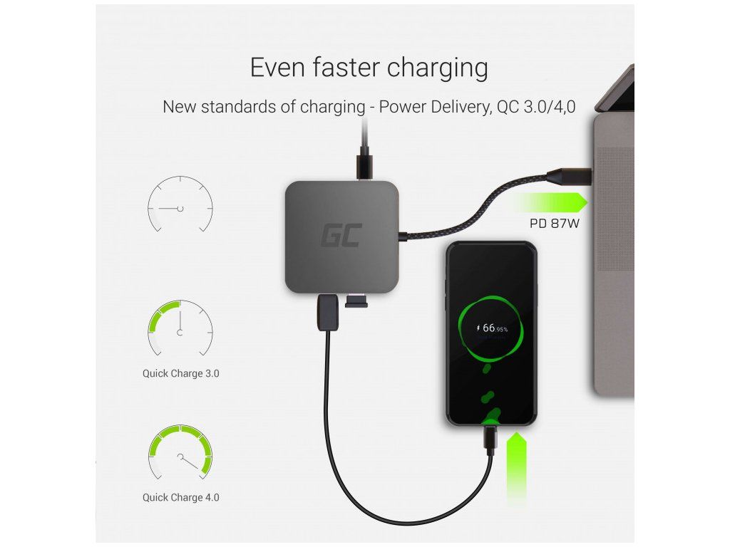 AK61 Green Cell HUB USB-C HDMI – 7 portů pro MacBook Pro, Dell XPS, Lenovo X1 Carbon