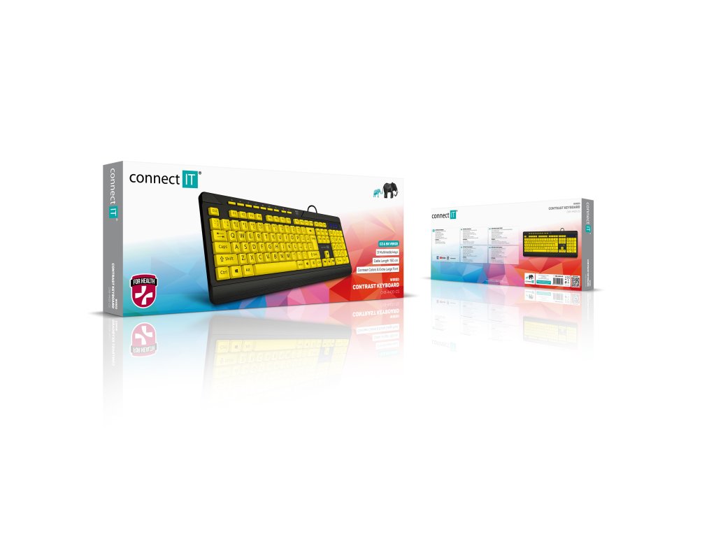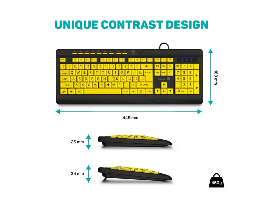 Connect IT For Health Contrast klávesnice s velkým fontem, CZ/SK - žlutá/černá