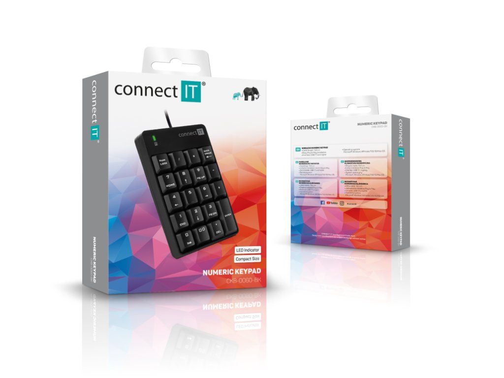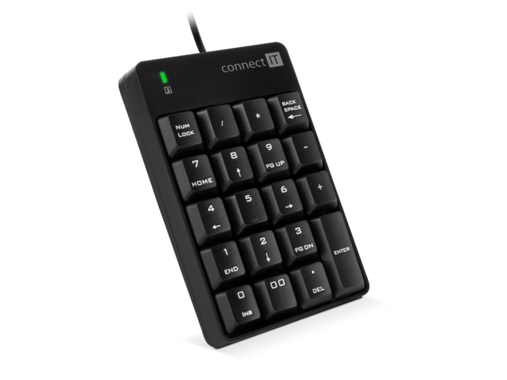Connect IT NumCALC je drátová externí numerická klávesnice určená pro domácí i profesionální kancelářské použití. Slouží jako praktické rozšíření klávesnice zejména pro notebooky, které nemají samostatnou numerickou část, nebo pro uživatele, kteří potřebují mít numerický blok odděleně – například pro pohodlné ovládání levou rukou.