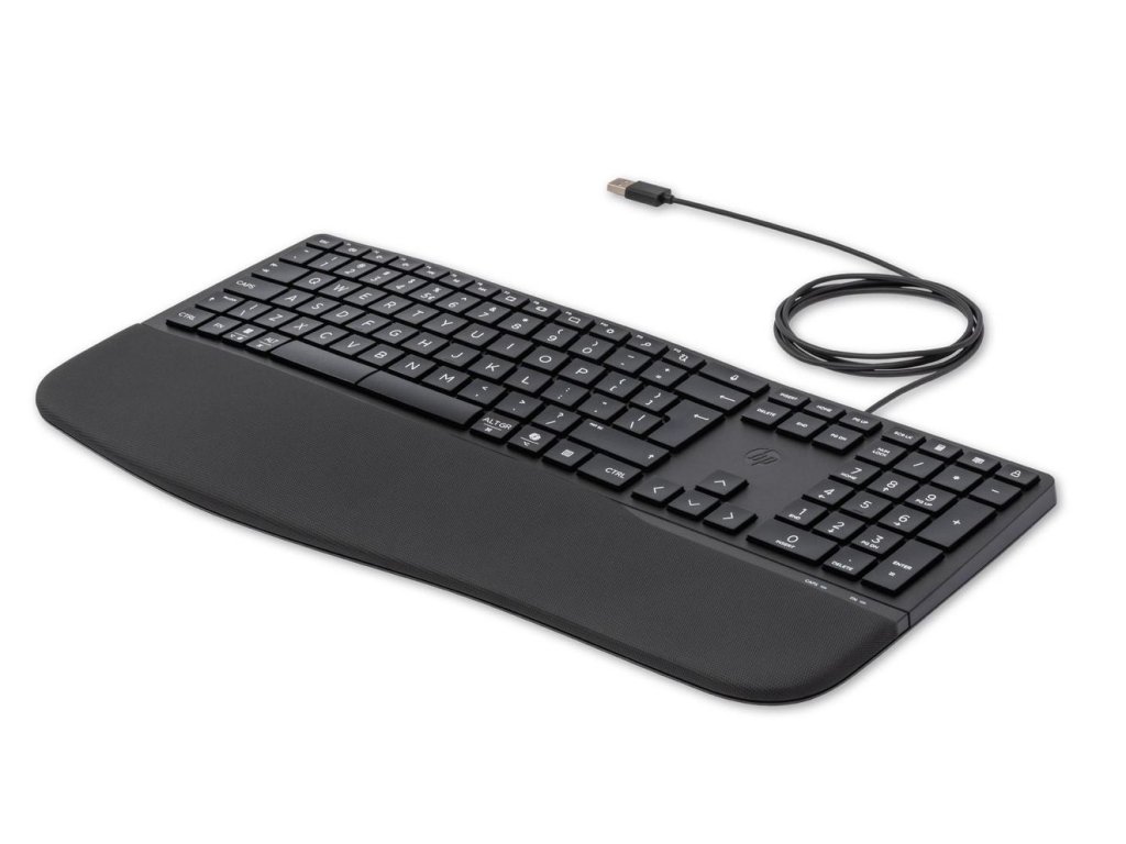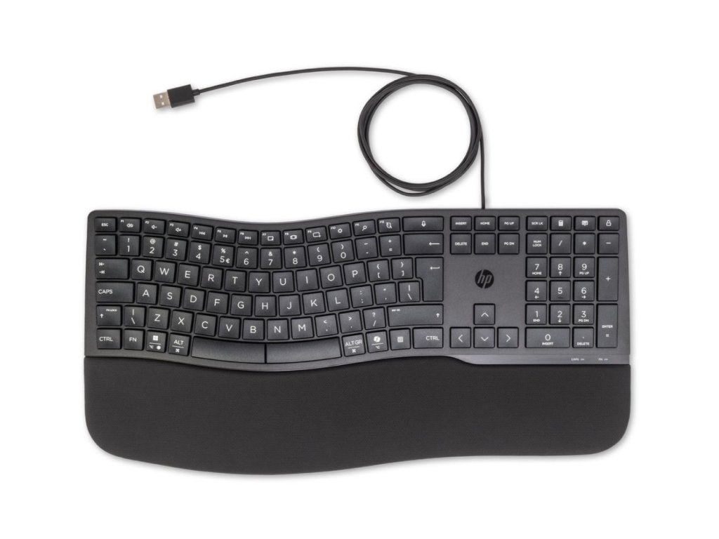 Ergonomická kabelová klávesnice HP 480 Comfort (8T6M1AA#BCM) s třemi polohami náklonu, 23 programovatelnými klávesami a funkcemi pro celodenní pohodlné psaní.