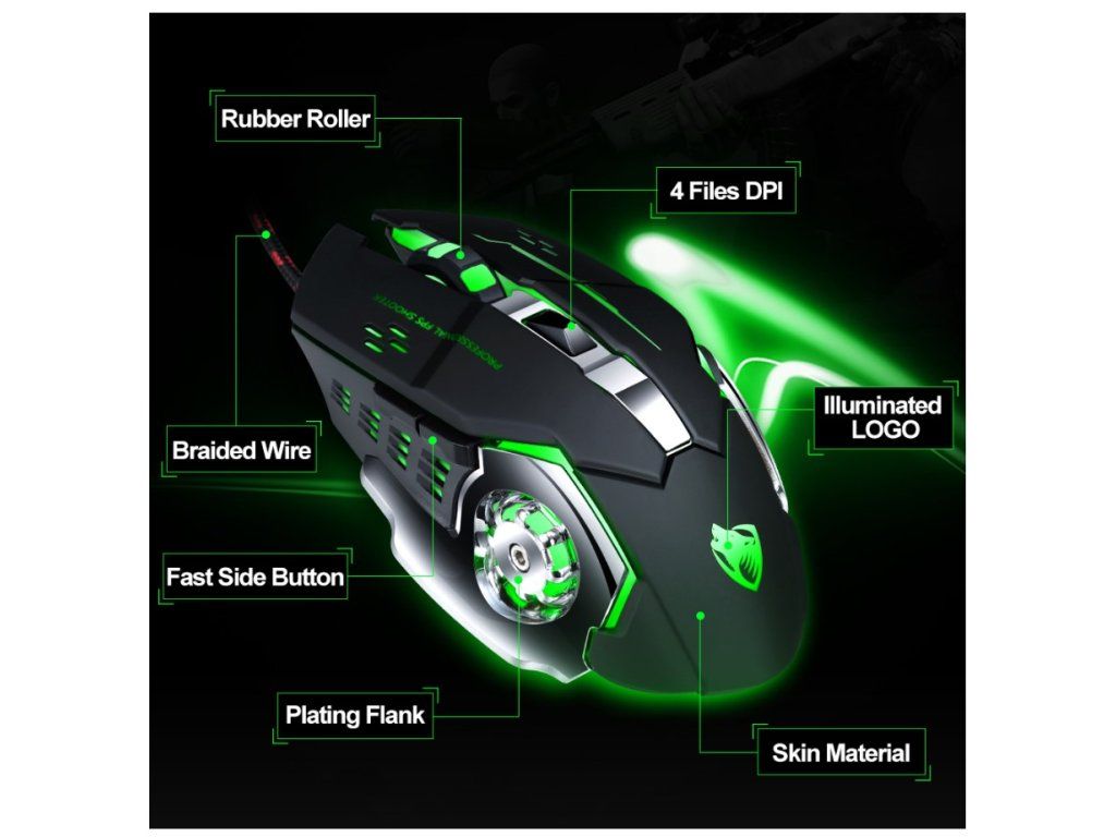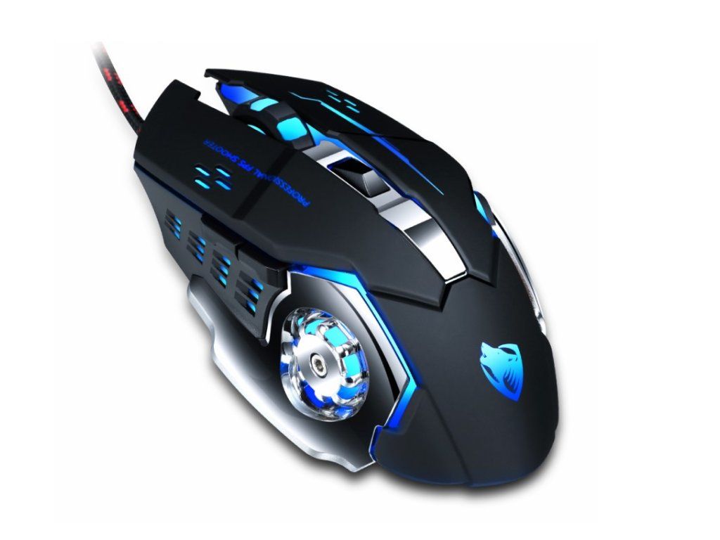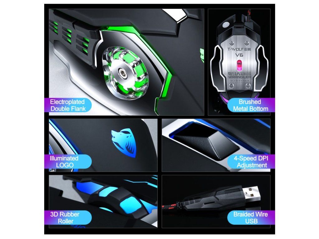 T-Wolf V6 Herní myš se zvukem – černá/stříbrná