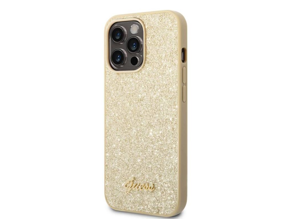 Guess PC/TPU Glitter Flakes Metal Logo Zadní Kryt pro iPhone 14 Pro Gold