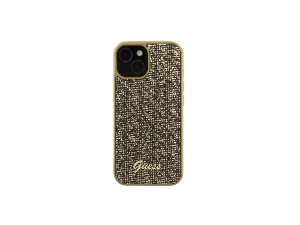 Guess PU Square Mirror Script Logo Zadní Kryt pro iPhone 15 Zlatý
