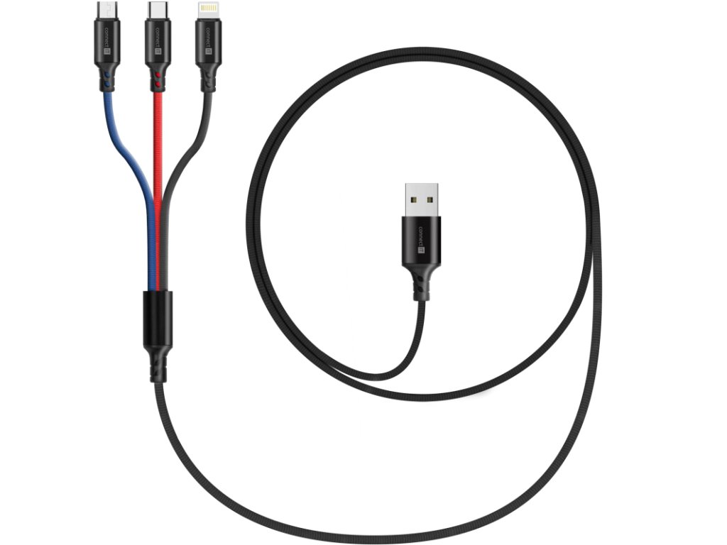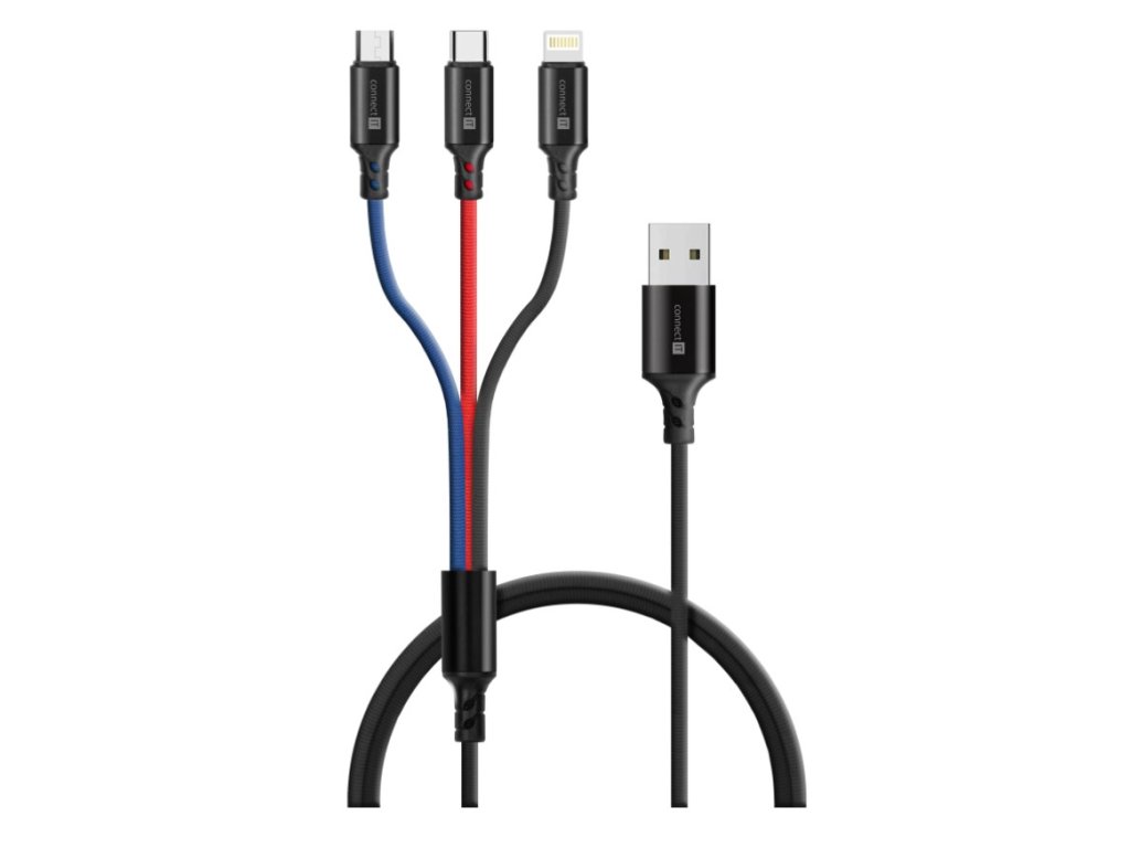 Connect IT Wirez Datový kabel 3v1, USB-C & Micro USB & Lightning, 1,2 m – černá