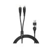 Kabel zvládne nabíjet dvě zařízení zároveň s vysokou efektivitou. USB-C konektor podporuje nabíjení i datový přenos, Lightning konektor je určen pro rychlé a bezpečné napájení Apple zařízení.