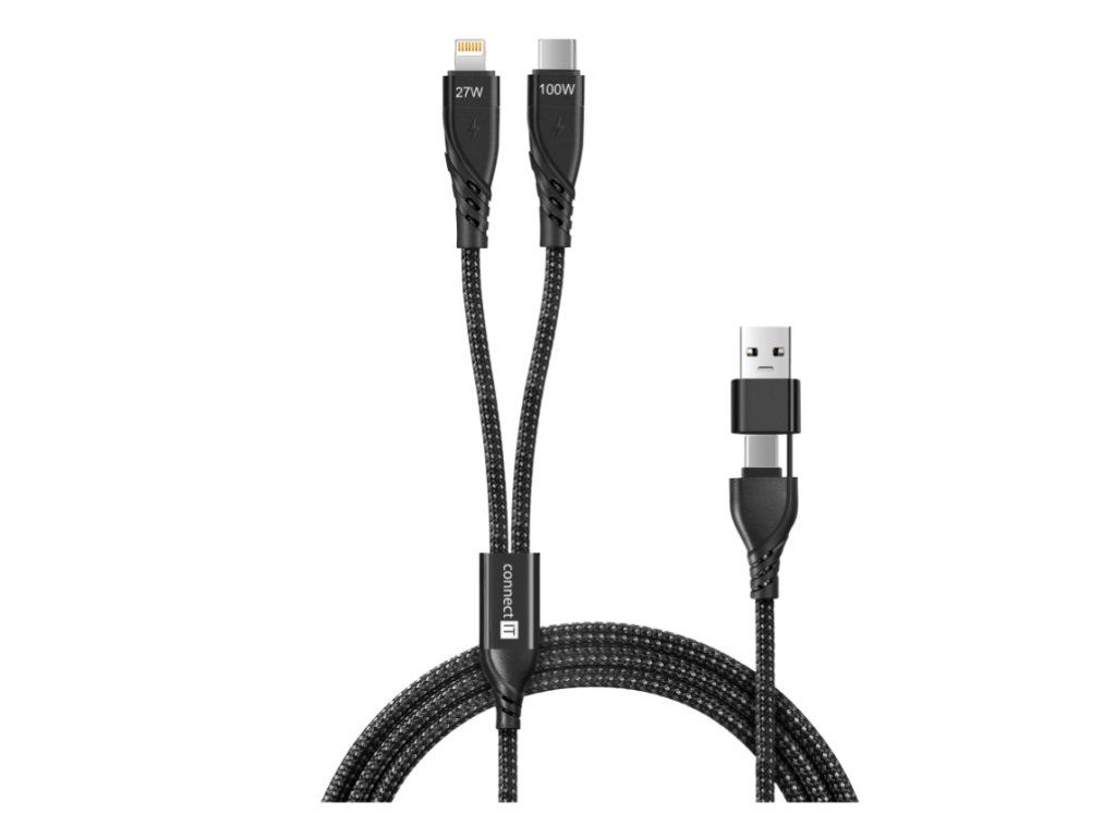 Connect IT Wirez Datový kabel 4v1, 1x USB-C, 1x Lightning, 1.25 m - černá