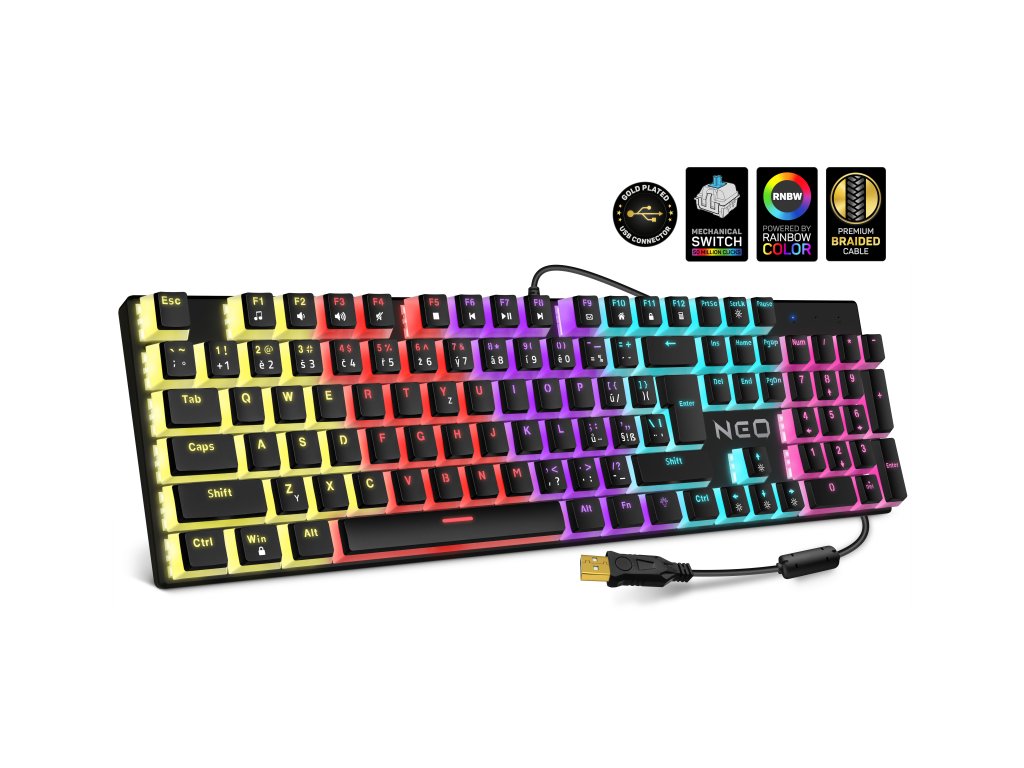 Mechanická přesnost, styl a výdrž v jednom – klávesnice Connect IT NEO Pudding z herní série NEO přináší špičkový výkon pro každého hráče. Díky mechanickým spínačům s dlouhou životností a RAINBOW LED podsvícení s 12 režimy se stane ideálním parťákem nejen pro večerní hraní, ale i náročné pracovní úkony. Samozřejmostí je české rozložení a prémiové zpracování kabelu i konektoru.