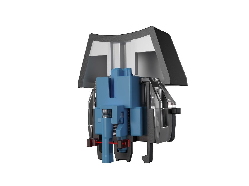 Opticko-mechanické Blue spínače využívají detekci infračerveného paprsku místo pohyblivých mechanických částí. Ty vám tak nabídnou odezvu kláves 2 ms, což je 10x rychlejší odezva oproti tradičním mechanickým spínačům.