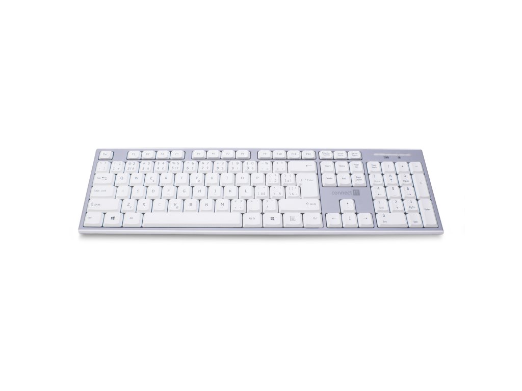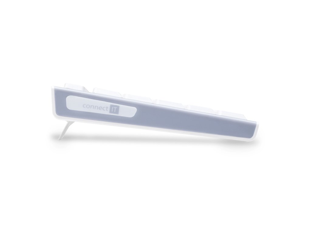Designová kombinace bílé a šedé barvy dodává setu moderní vzhled, který se hodí do každého interiéru. Díky nízkému profilu a výškovému nastavení je klávesnice komfortní i při delší práci.