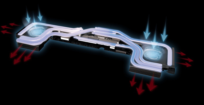 Základem herních notebook je vždy dobré hlazení. Díky technologii MSI Cooler Boost 5 je průtok vzduchu snazší a velmi účinný. Dokonalého chlazení dostáhne díky většímu počtu tepelných trubic. Notebook má dva tepelné okruhy pro procesor a pro grafiku. Poté Whirlwind Blade a skvělé tepelné trubice dokážou vyprodukované teplo snadno dostat ven z notebooku.