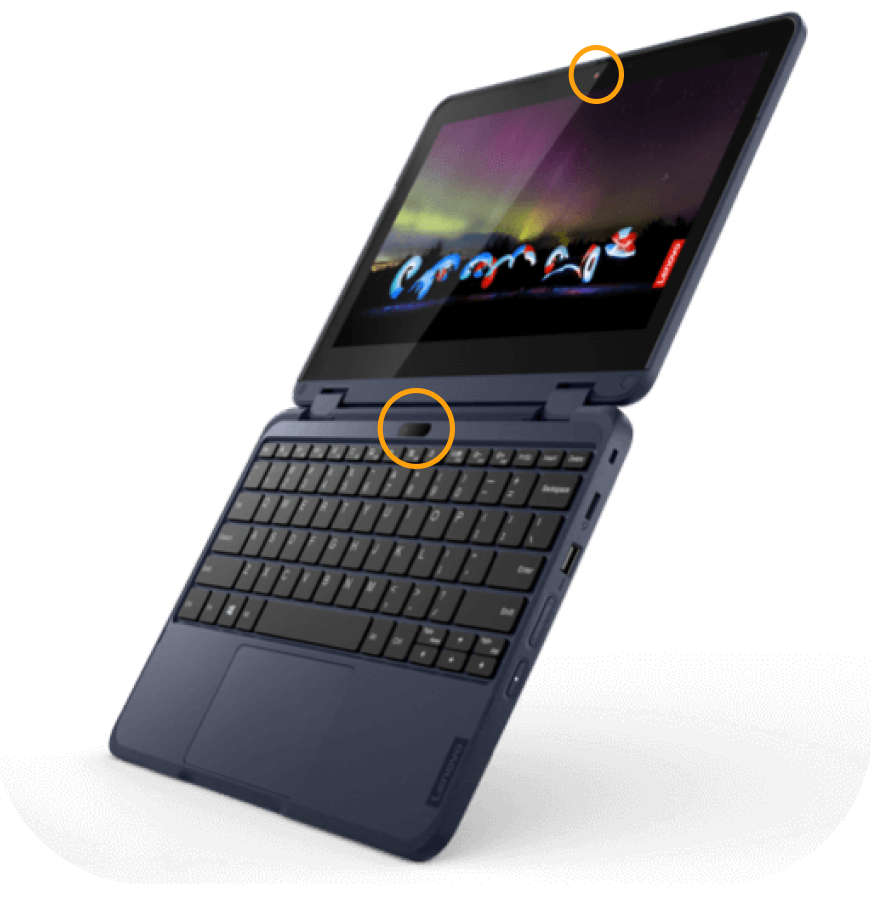 Pro videohovory i zachycení dění kolem. Lenovo 500w Gen 3 má přední HD webkameru pro online hovory a druhou zadní 5Mpx „world-facing“ kameru, která umožňuje fotit dokumenty, experimenty nebo poznámky na tabuli. V kombinaci s integrovaným mikrofonem a podporou Microsoft Teams se z notebooku stává plnohodnotný nástroj pro online výuku a týmovou spolupráci.