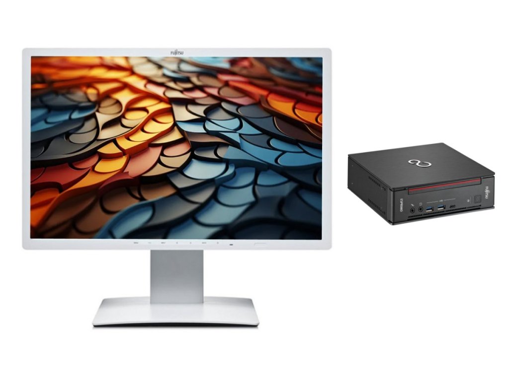 Výhodná sada pro kancelář či domácí pracovní stanici — kombinuje kompaktní stolní počítač Fujitsu Esprimo Q958 a kvalitní monitor Fujitsu B24W‑7 LED. Ideální řešení pro uživatele, kteří hledají spolehlivý a elegantní komplet pro produktivní práci.