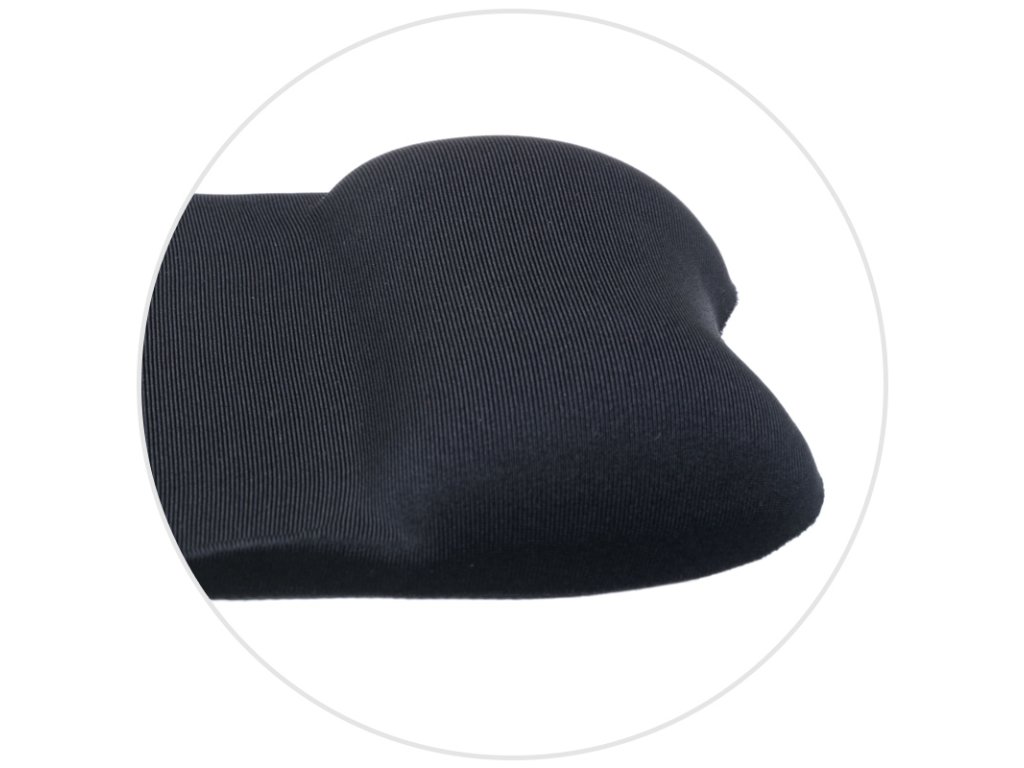 Podložka je vybavena měkkou opěrkou z paměťové pěny, která se přizpůsobí tvaru vaší ruky a zápěstí. Tím výrazně snižuje tlak při používání myši a zabraňuje únavě a bolesti, které mohou vzniknout při dlouhé práci u počítače.