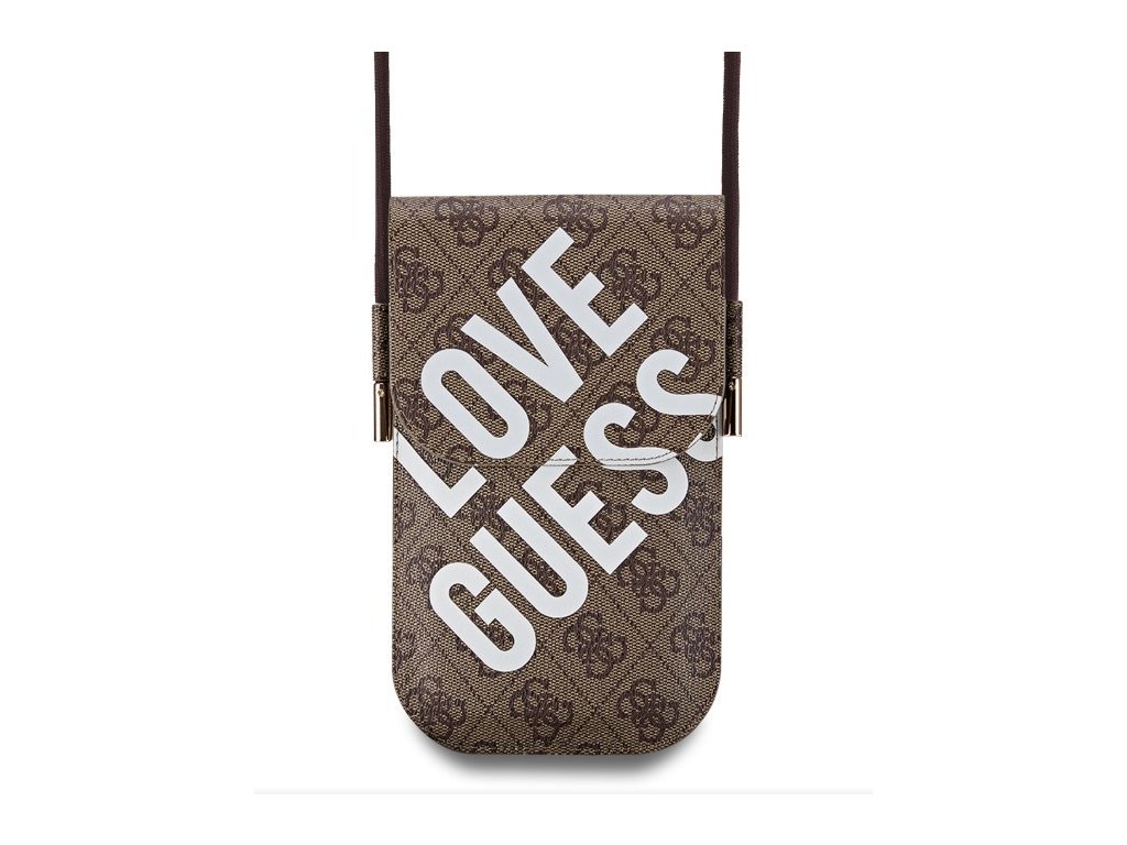 Guess PU 4G Big Love Logo Taška na Telefon Brown