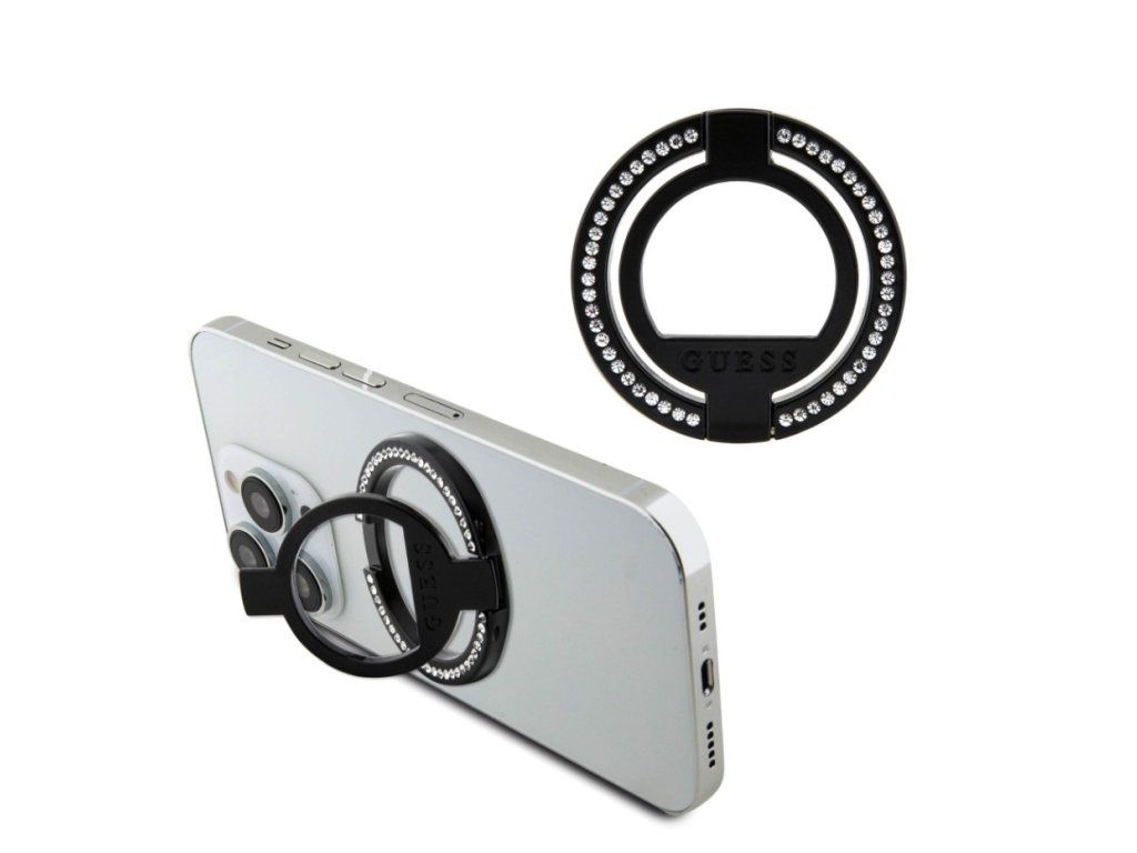 Vyražené logo Guess a třpytivé kamínky dodávají elegantní vzhled a šmrnc- Kompatibilní s MagSafe technologií pro snadné a bezpečné připevnění na telefon- Praktický stojan umožňuje pohodlné sledování videí a chatování- Drží váš telefon pevně v ruce a zároveň vám poskytuje volné ruce pro každodenní aktivity- Stylový a funkční doplněk pro váš telefon.