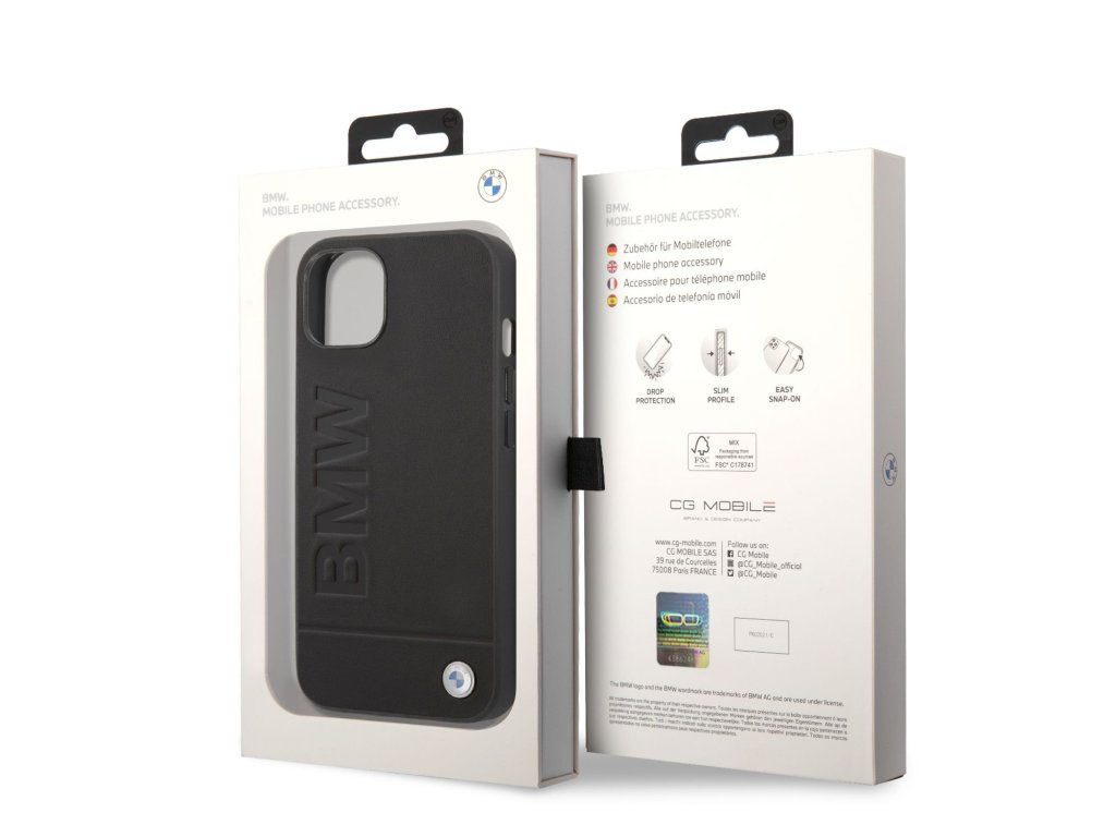 BMW Leather Hot Stamp Zadní Kryt pro iPhone 14 Plus Black