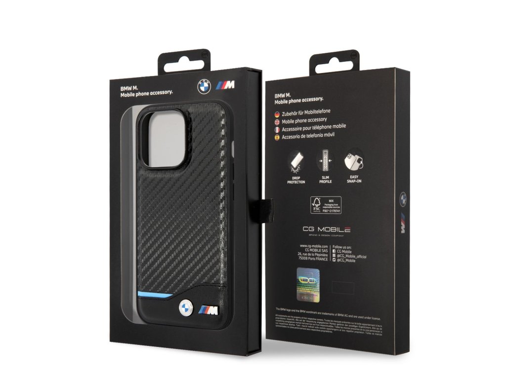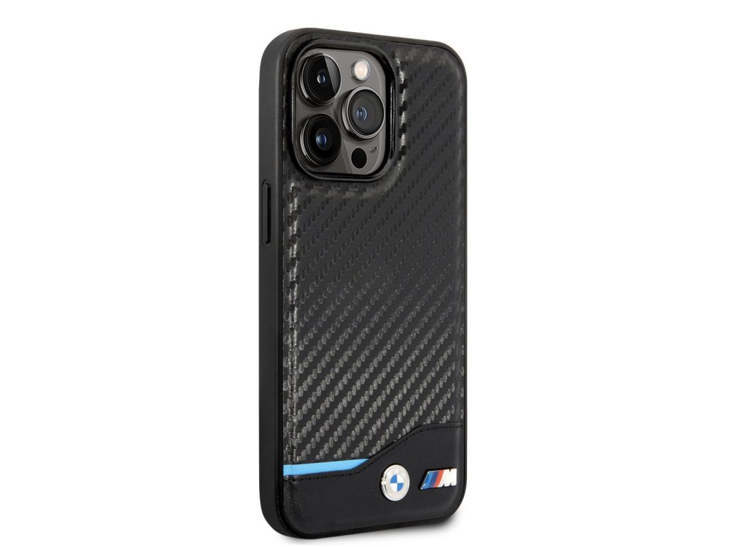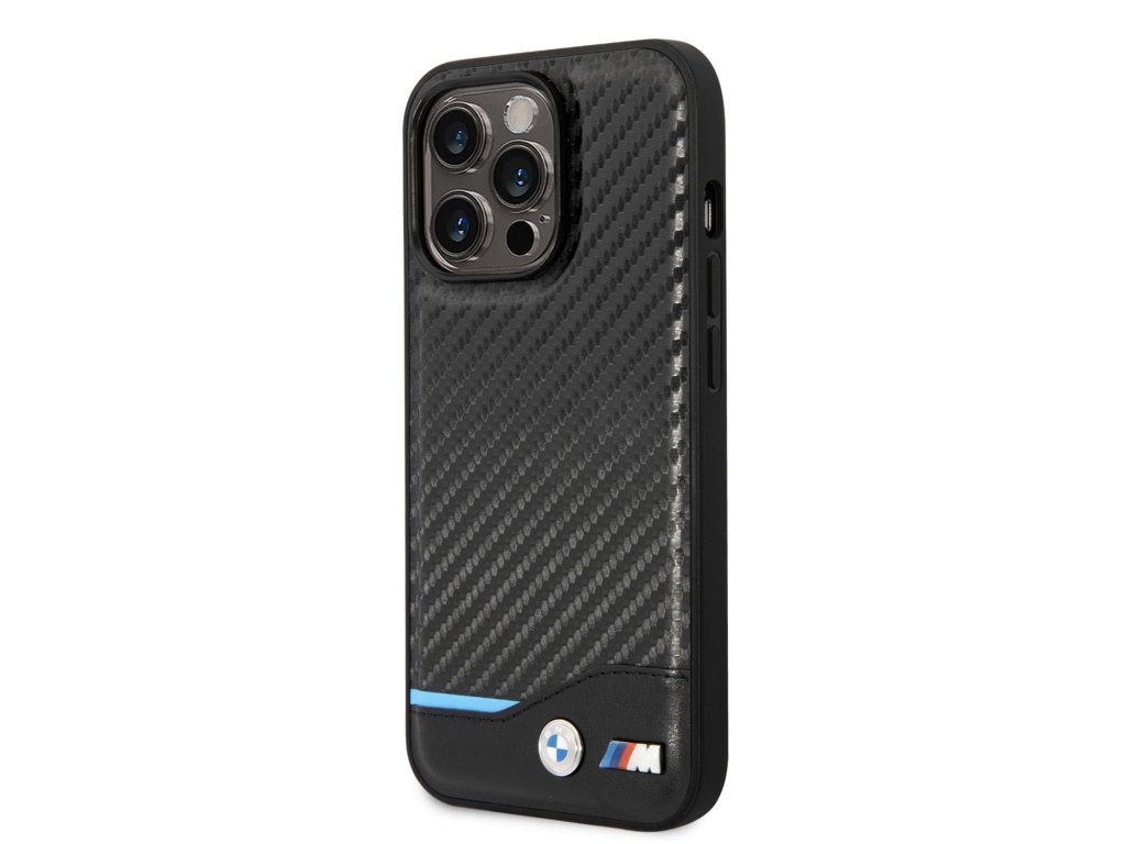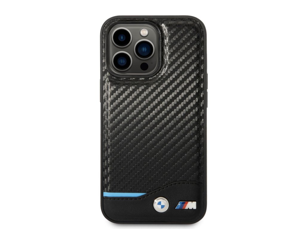 BMW M PU Carbon Blue Line Zadní Kryt pro iPhone 14 Pro Max Black