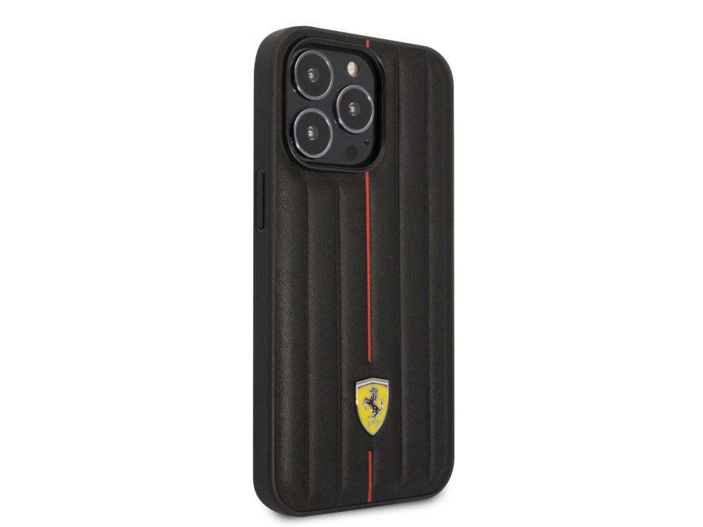 Ferrari Leather Embossed Stripes Zadní Kryt pro iPhone 14 Pro Black
