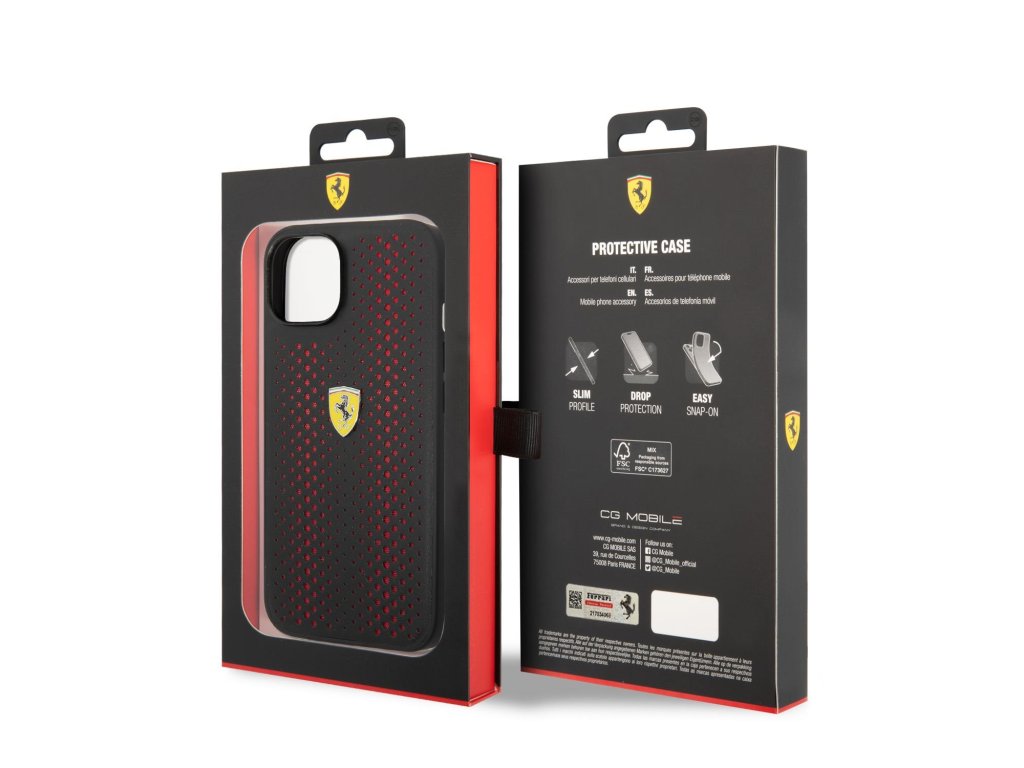 Ferrari PU Leather Perforated Zadní Kryt pro iPhone 14 Red