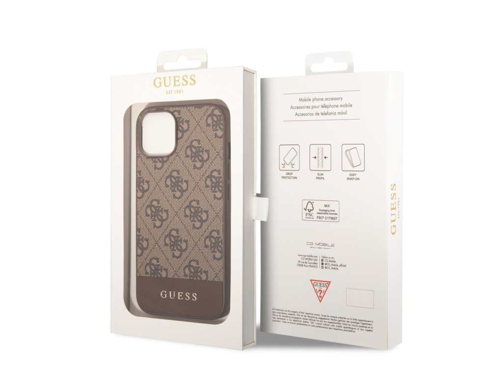 Guess 4G Stripe Zadní Kryt pro iPhone 14 Plus Brown