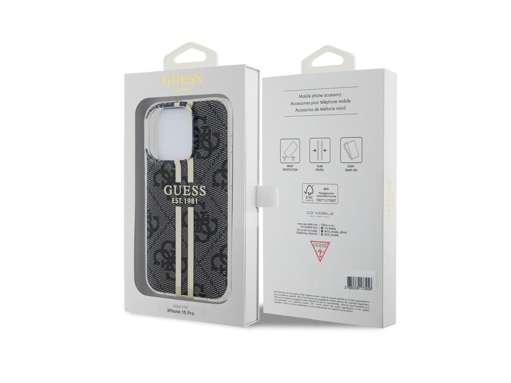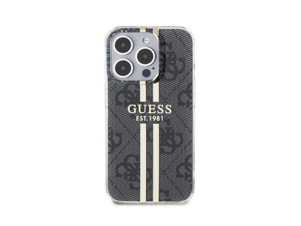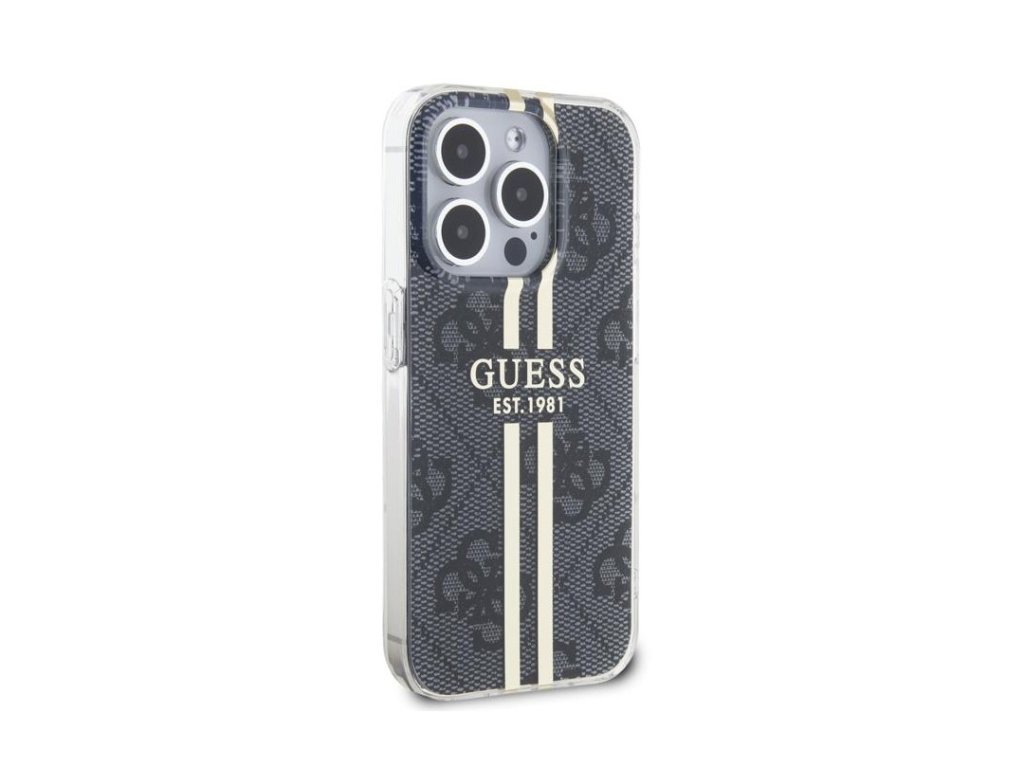 Guess IML 4G Gold Stripe Zadní Kryt pro iPhone 15 Pro Black