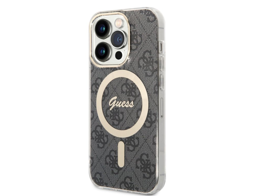 Guess 4G prémiový ochranný kryt telefonu v kombinaci zadní strany potaženou látkou s motivem Guess a pružnými PU boky a vestavěným magnetem pro Apple MagSafe příslušenství.