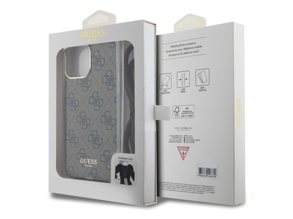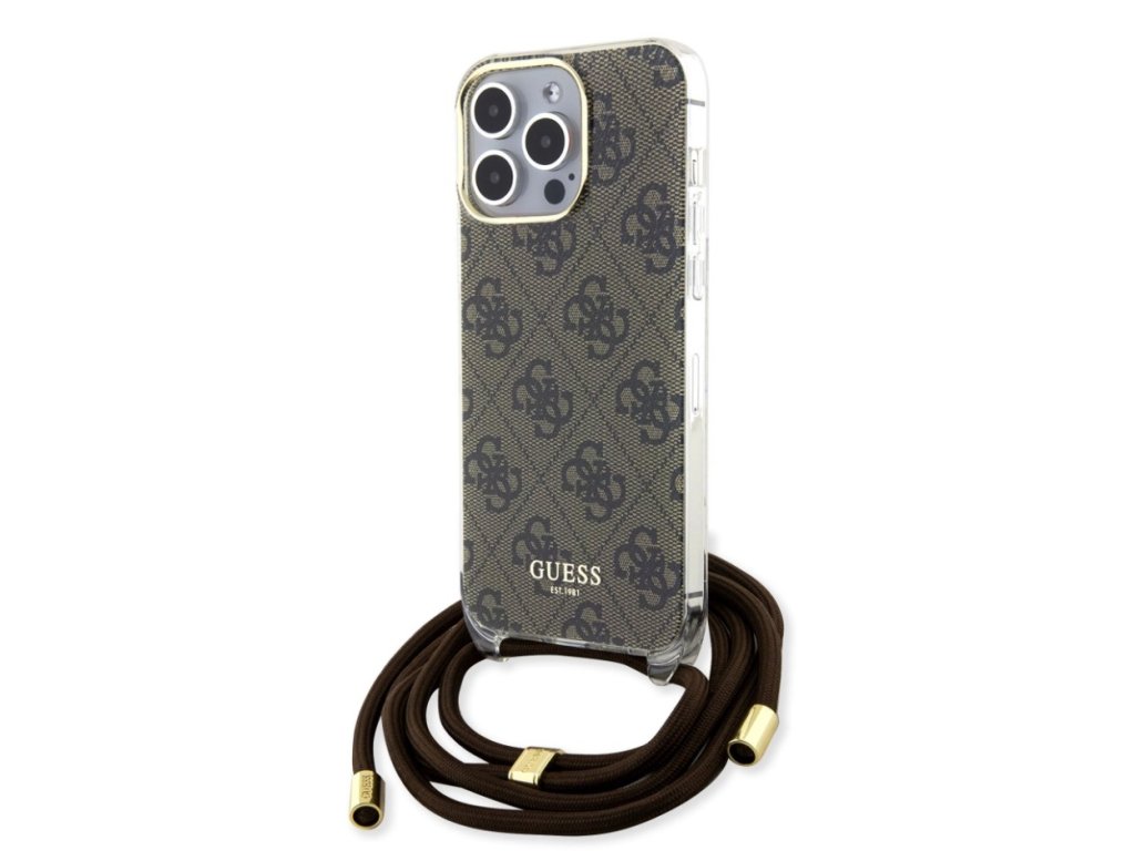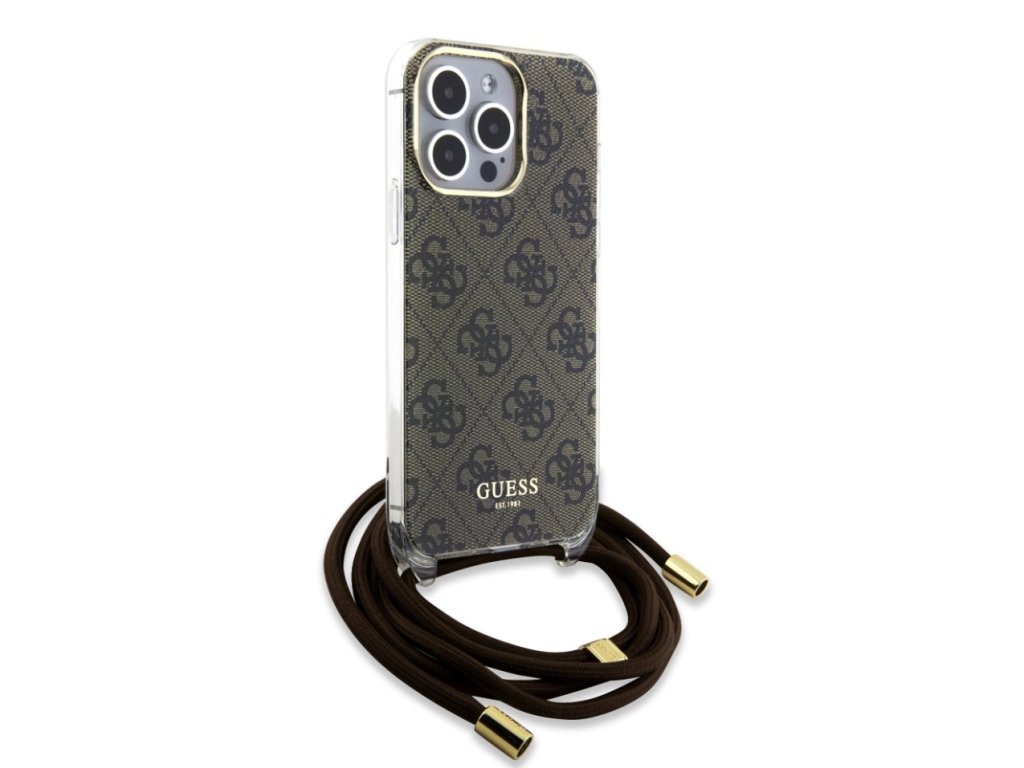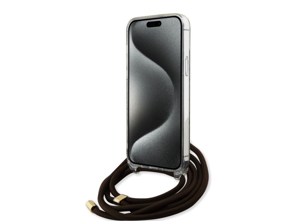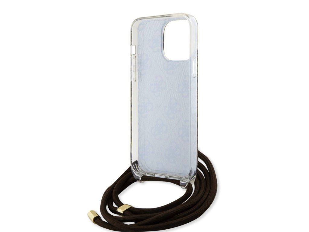 Guess IML 4G Printed Crossbody Popruh Zadní Kryt pro iPhone 15 Pro Brown