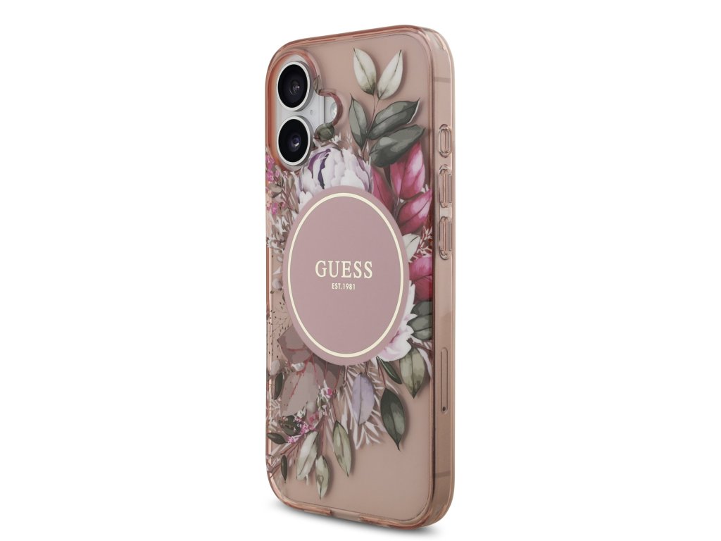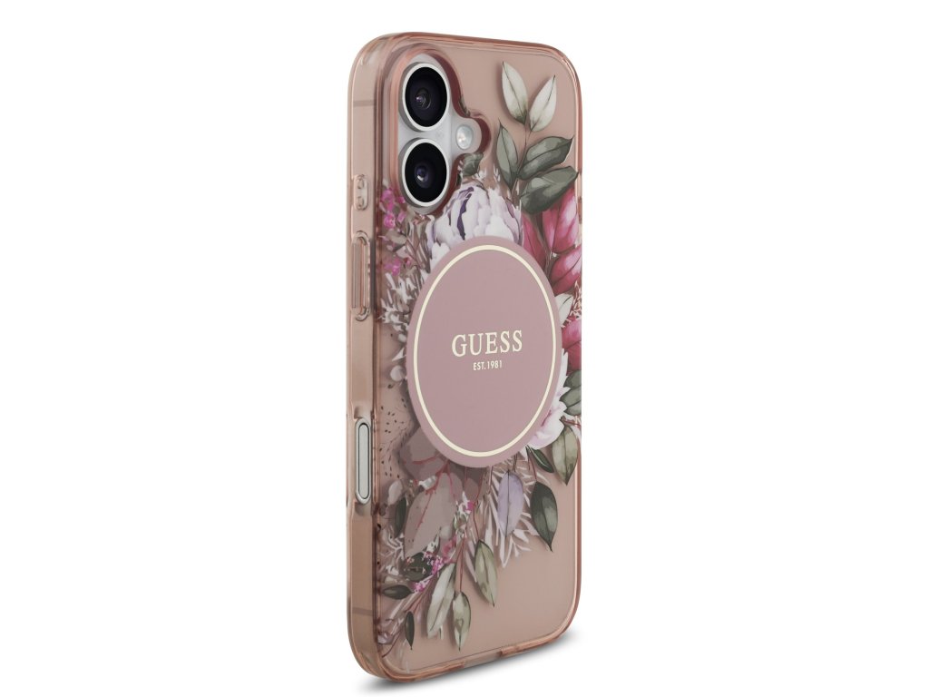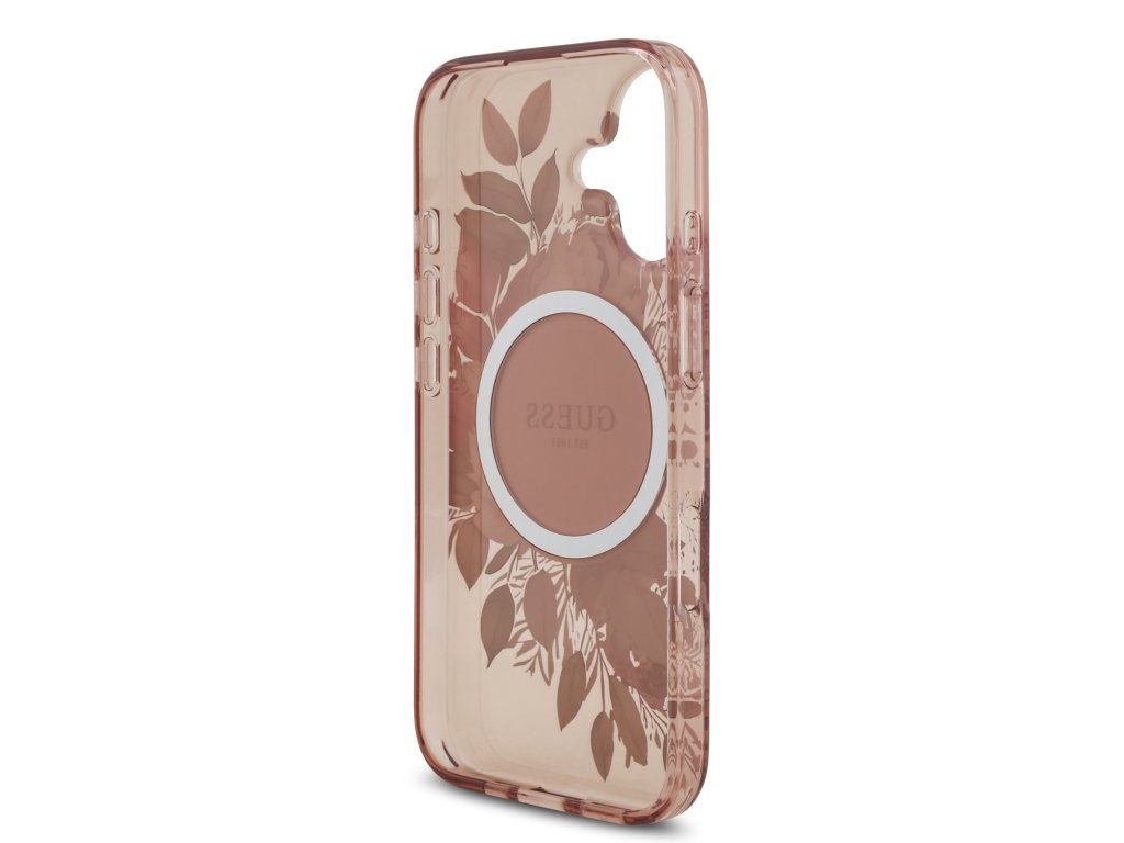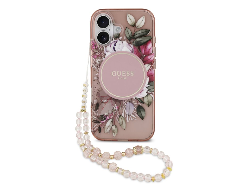 Guess IML Flowers Strap MagSafe Zadní Kryt pro iPhone 17 – růžová