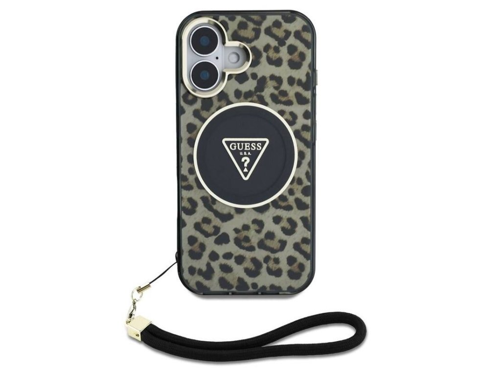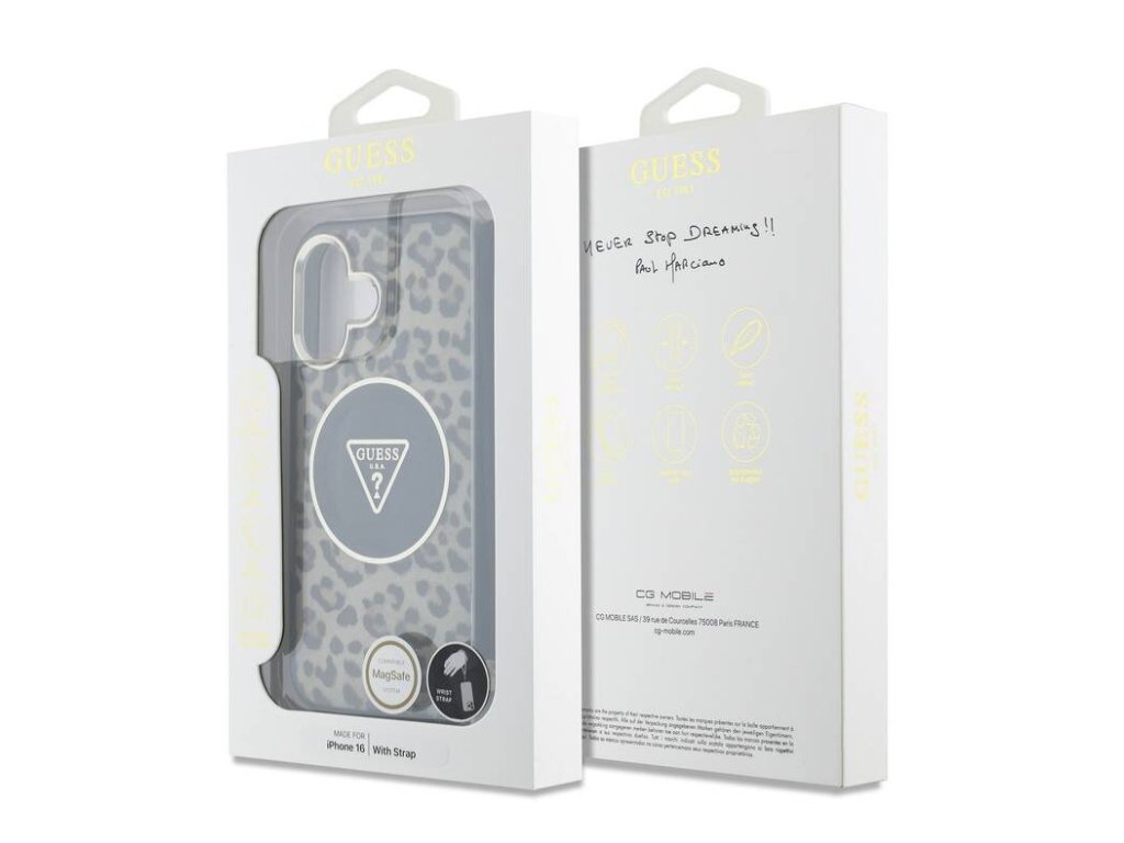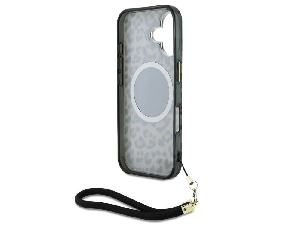 Dodejte svému iPhonu 16 šelmový styl s krytem Guess Leopard Strap MagSafe.