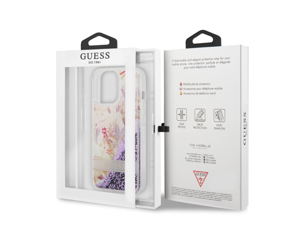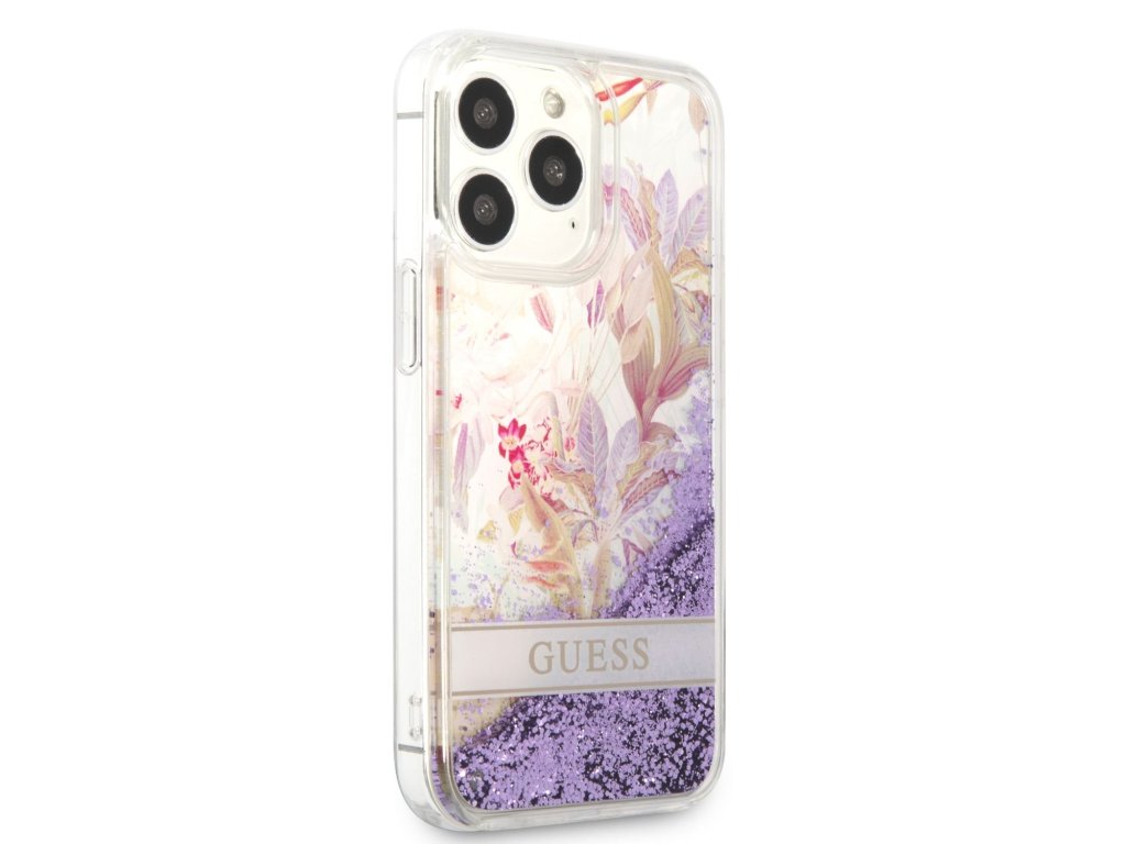 Guess Liquid Glitter Flower Zadní Kryt pro iPhone 13 Pro Purple