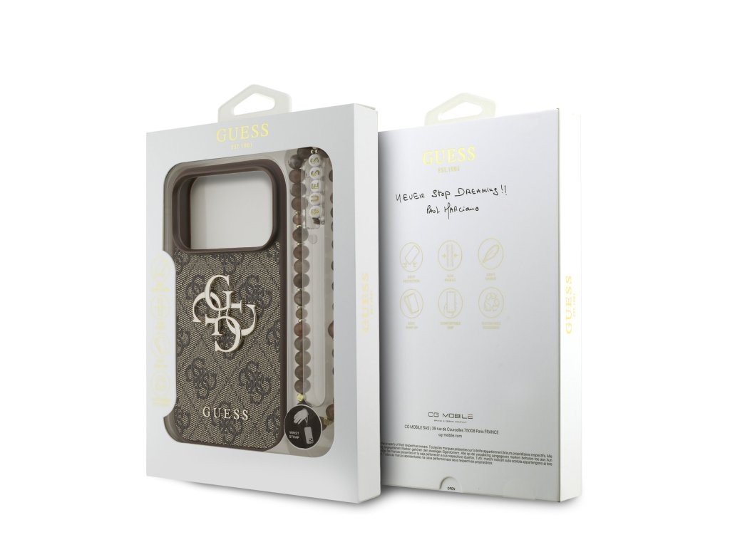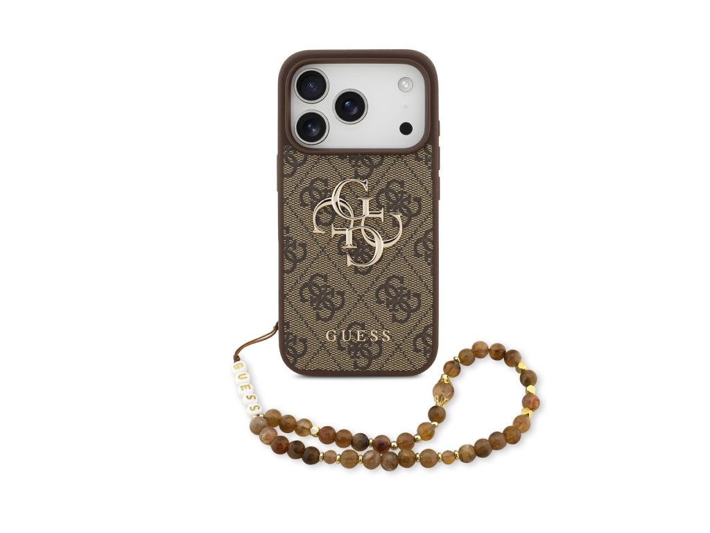 Guess PU 4G Metal Logo Strap Zadní Kryt pro iPhone 17 Pro – hnědá