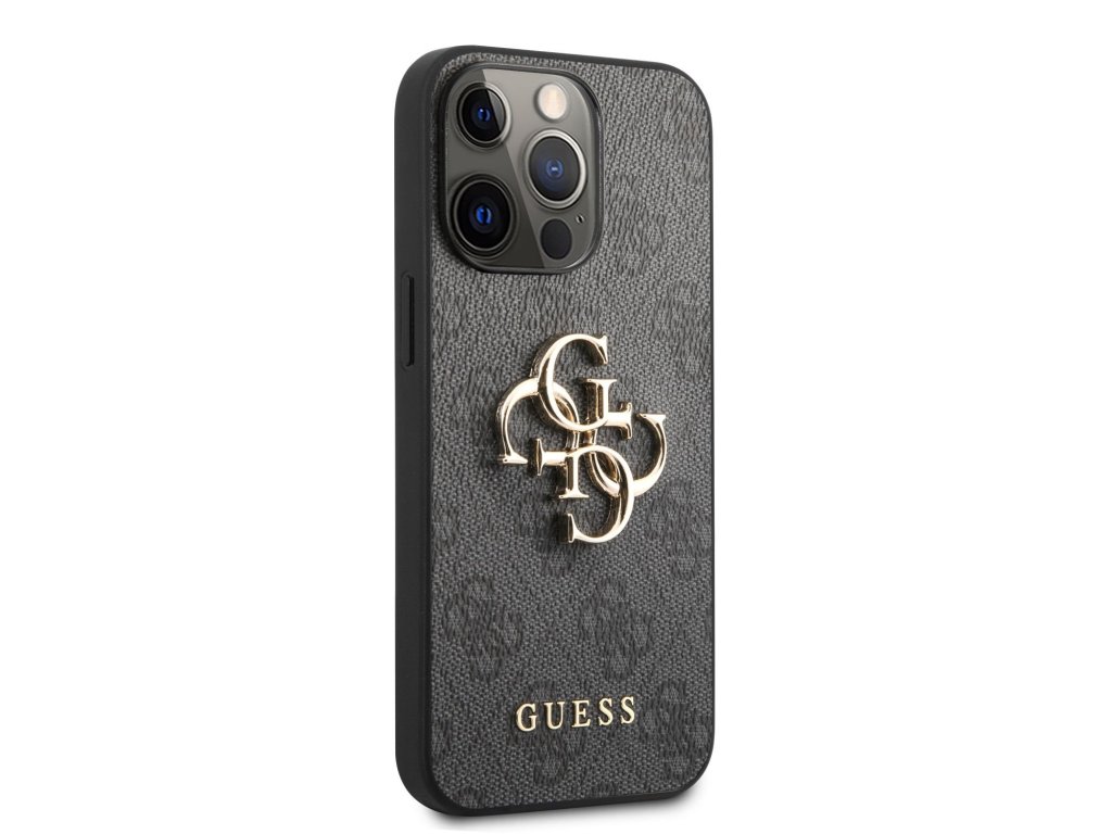 Guess PU 4G Metal Logo Zadní Kryt pro iPhone 13 Pro Max Grey