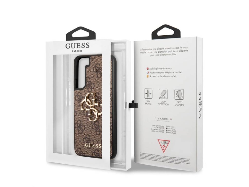 Guess PU 4G Metal Logo Zadní Kryt pro Samsung Galaxy S23+ Brown