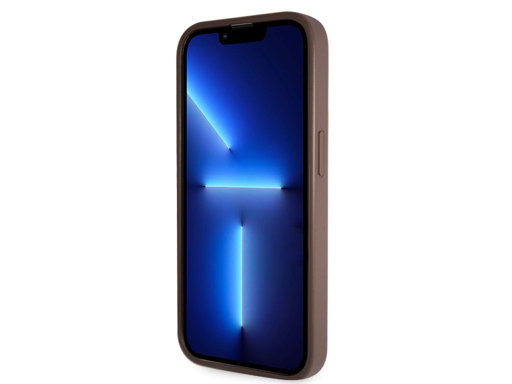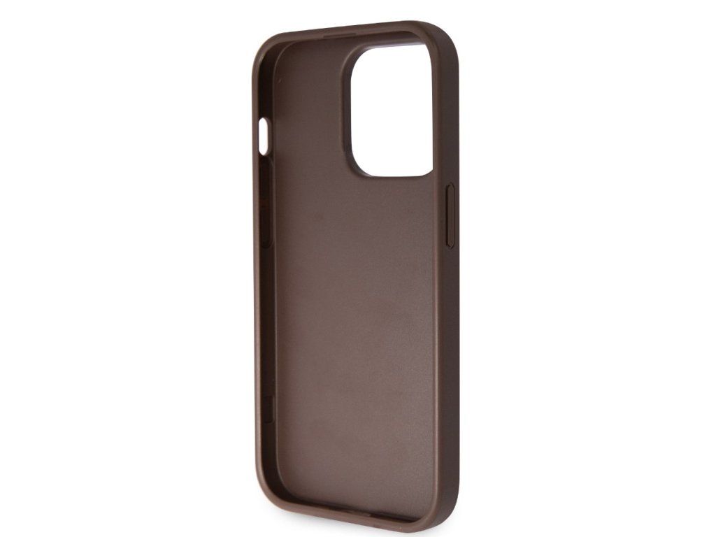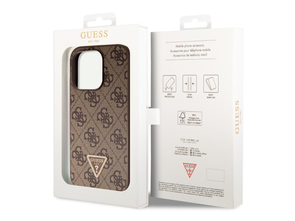 Guess PU 4G Strass Triangle Metal Logo Zadní Kryt pro iPhone 15 Pro Brown