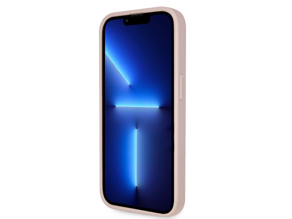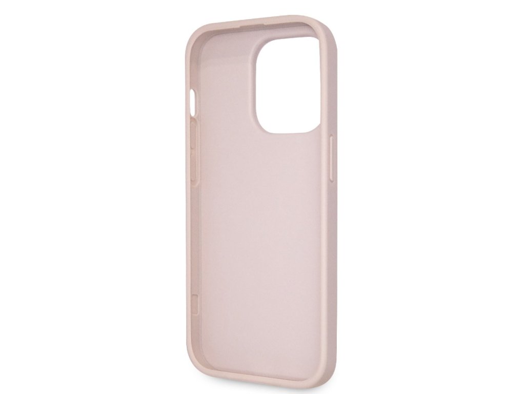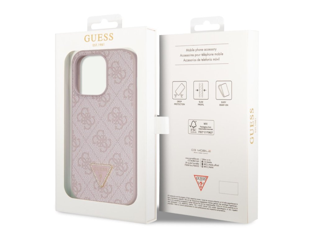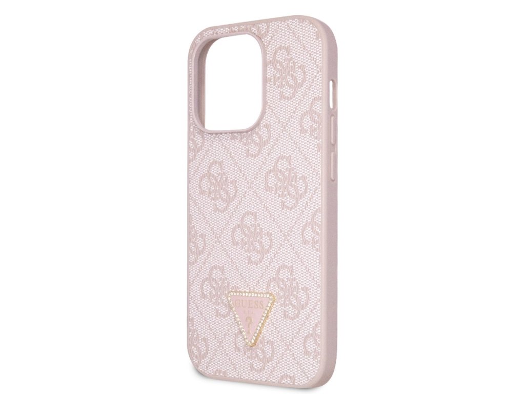 Guess PU 4G Strass Triangle Metal Logo Zadní Kryt pro iPhone 15 Pro Růžový