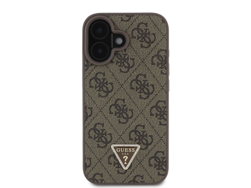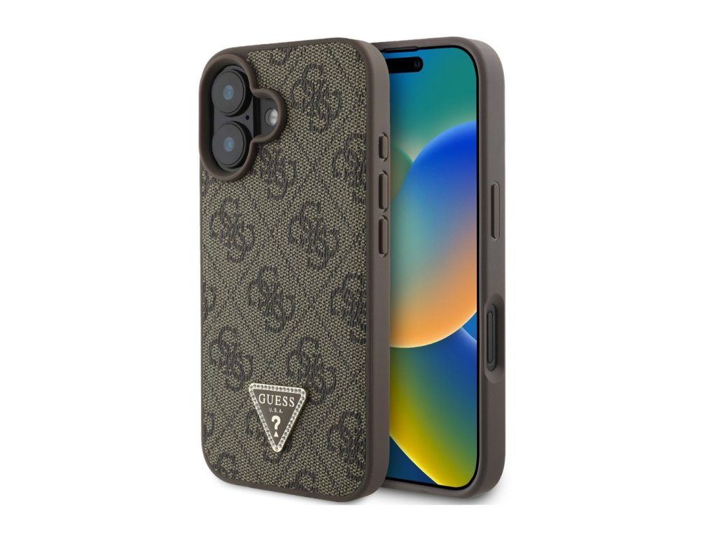 Guess PU 4G Strass Triangle Metal Logo Zadní Kryt pro iPhone 16 Brown