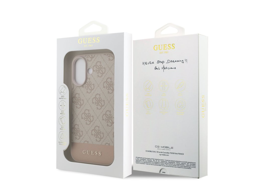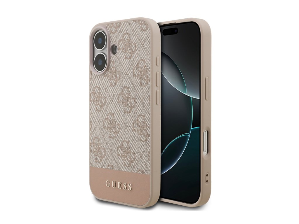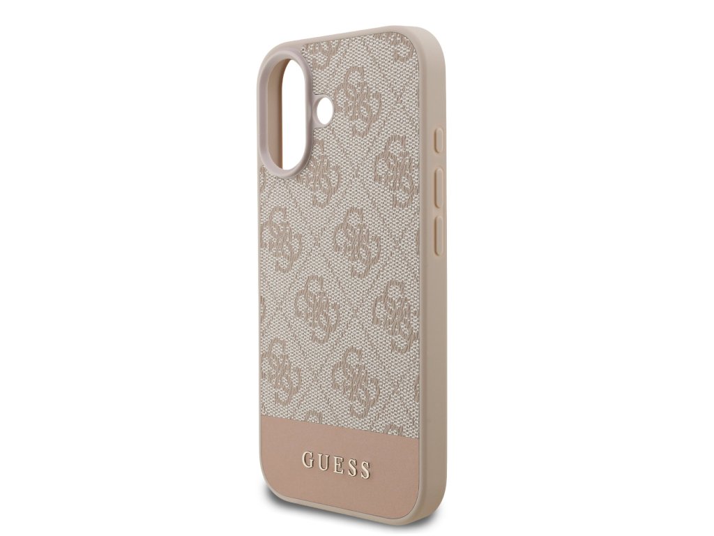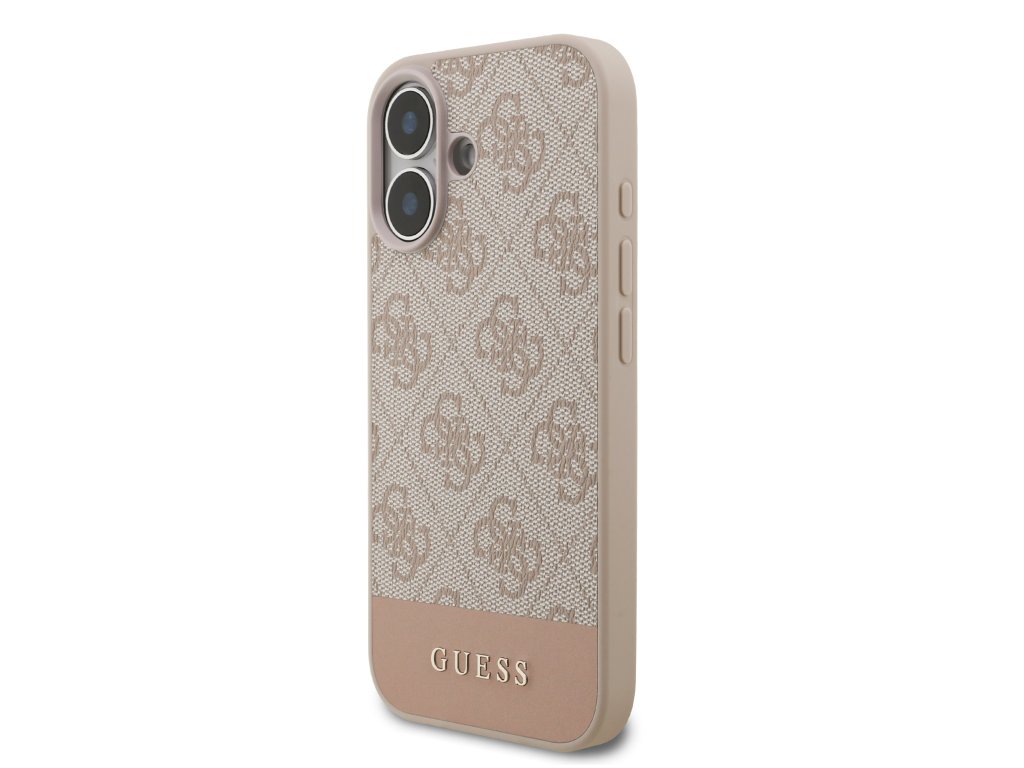 Guess PU 4G Stripe Zadní Kryt pro iPhone 17 – růžová