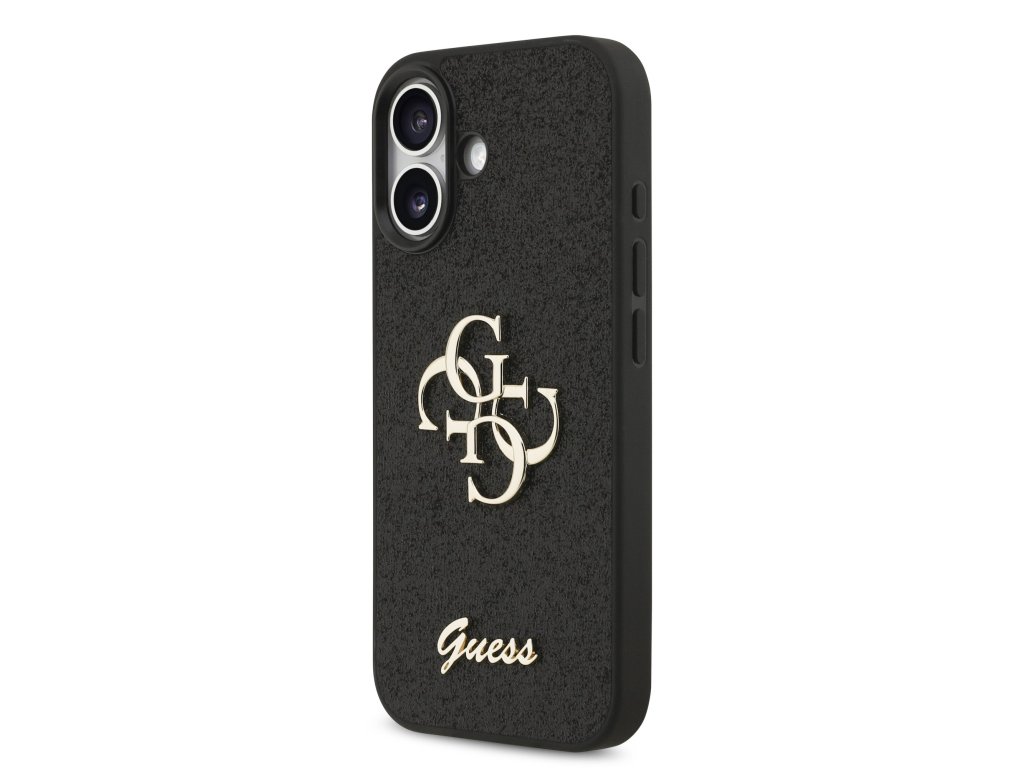 Guess PU Fixed Glitter 4G Metal Logo Zadní Kryt pro iPhone 17 – černá