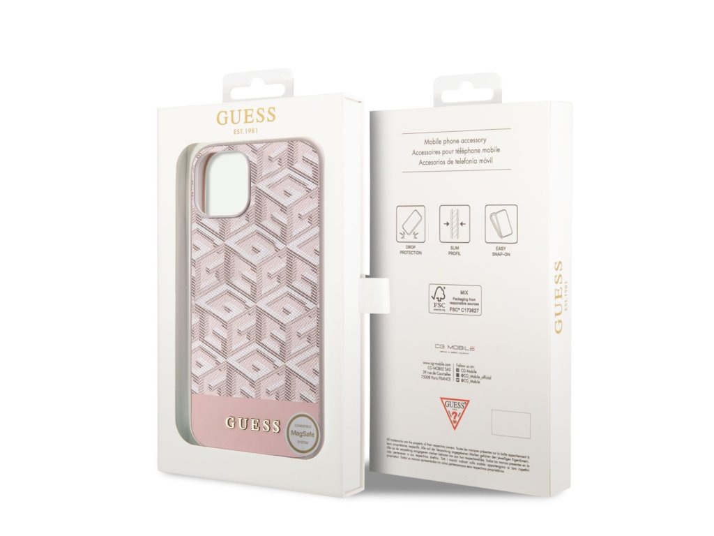 Guess PU G Cube MagSafe Zadní Kryt pro iPhone 14 růžový