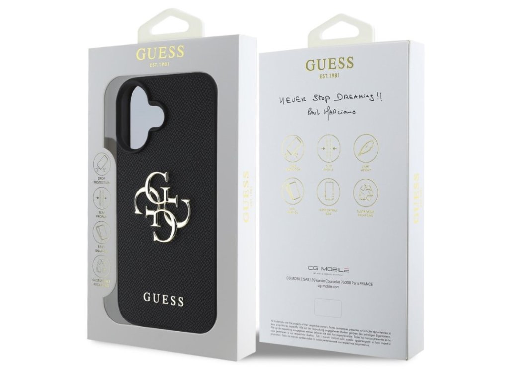 Guess PU Grained 4G Metal Logo Zadní Kryt pro iPhone 16 Černá