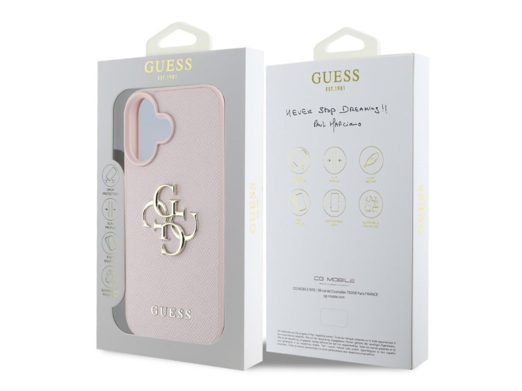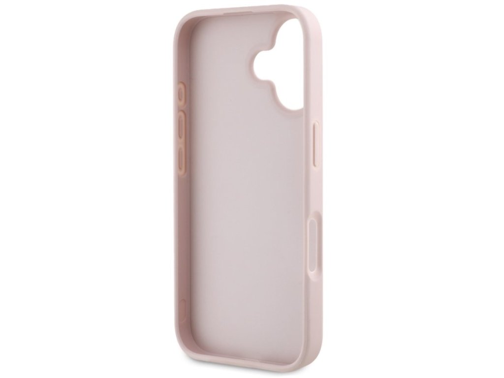 Guess PU Grained 4G Metal Logo Zadní Kryt pro iPhone 16 Růžová