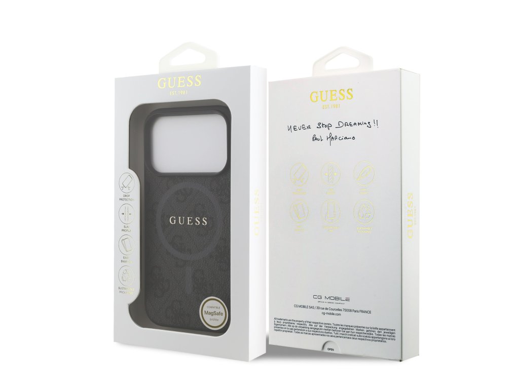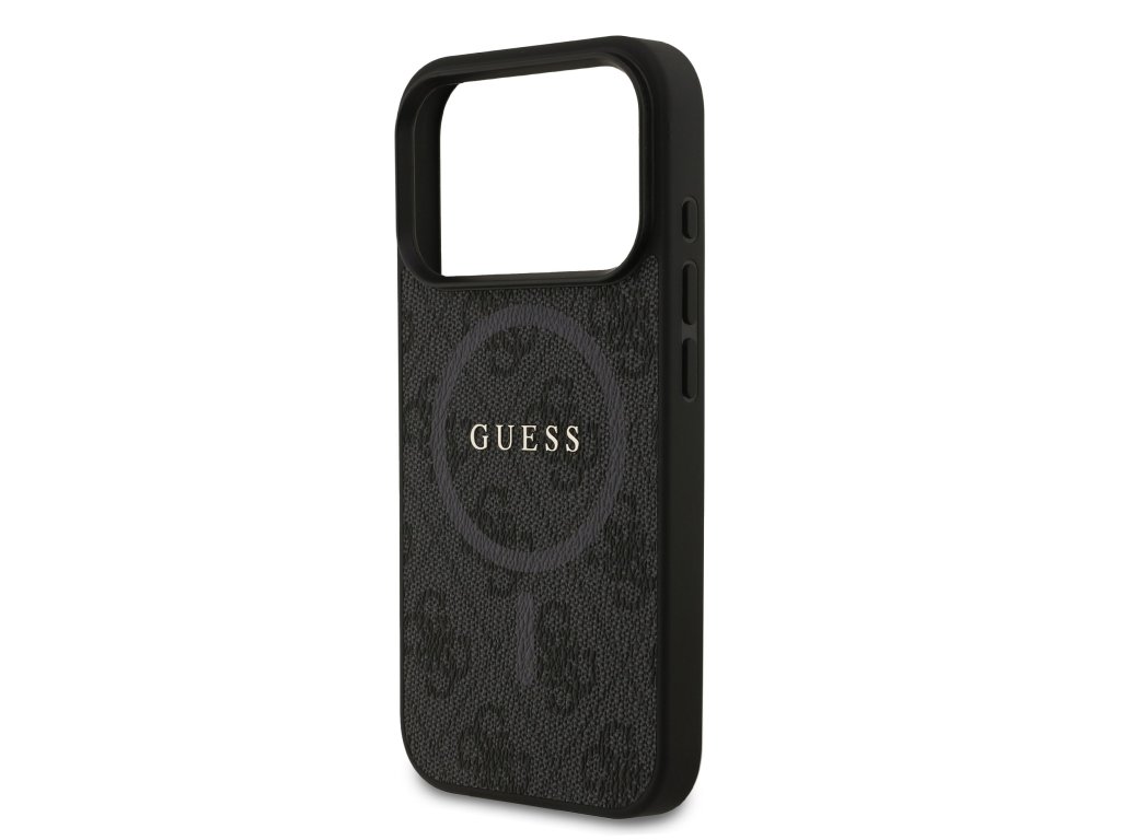 Guess PU Leather 4G Colored Ring MagSafe Zadní Kryt pro iPhone 17 Pro – černá