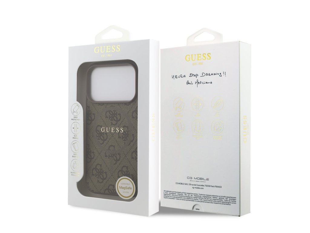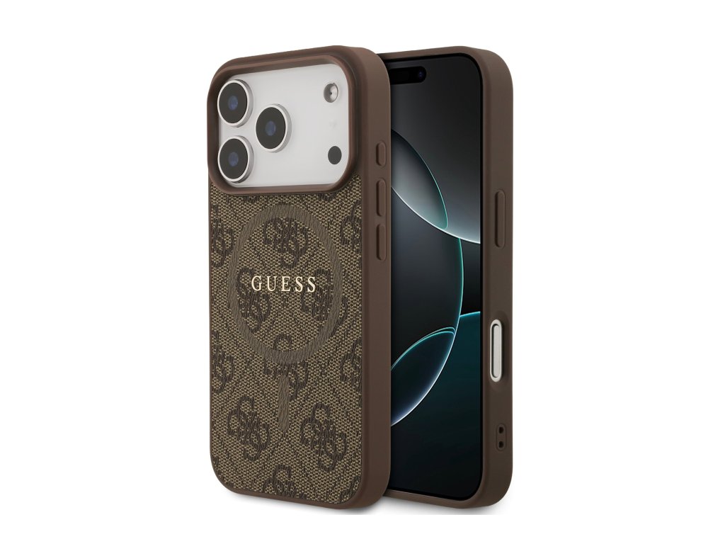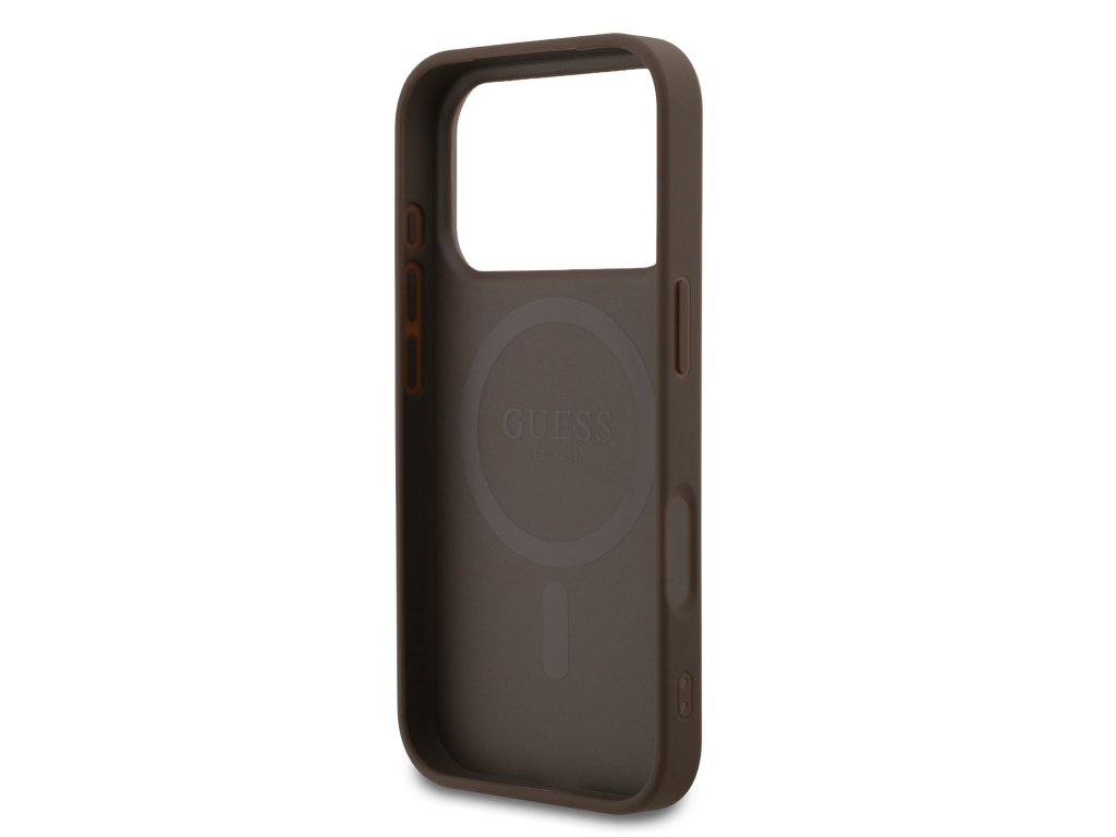 Guess PU Leather 4G Colored Ring MagSafe Zadní Kryt pro iPhone 17 Pro – hnědá